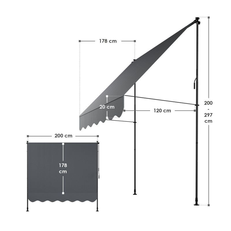 Inštalácia bez nutnosti vŕtania je rýchla a šetrná k múrom. Robustná oceľová konštrukcia a kvalitná vodeodolná tkanina zaisťujú dlhú životnosť a jednoduchú údržbu. Výšku markízy je možné ľahko nastaviť podľa potreby.