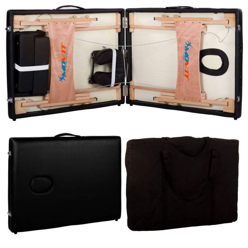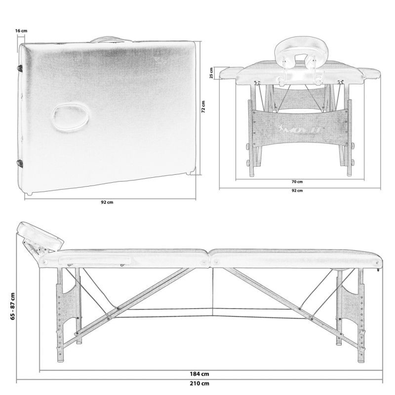 Veľmi pohodlné prenosné masážne ležadlo s opierkou hlavy, otvorom na tvár a lakťovými opierkami. Stabilný robustný rám je vyrobený z bukového dreva. Ležadlo je možné jednoducho umyť. Ľahko sa skladá aj rozkladá.