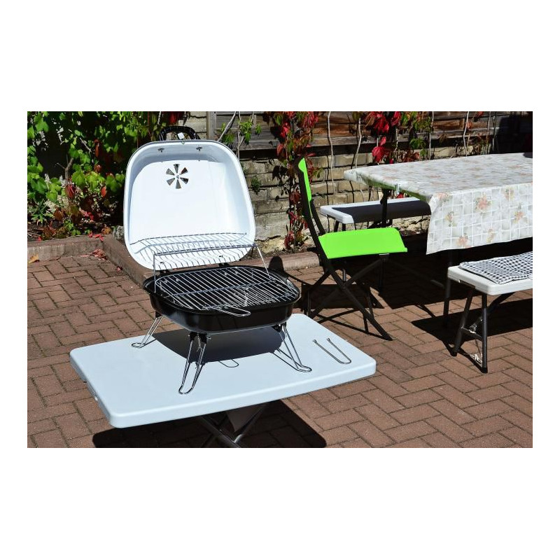 Vďaka tomuto prenosnému grilu si môžete urobiť grilovacie párty kdekoľvek budete chcieť. Vzhľadom na svoju hmotnosť a veľkosť je vhodný na prenášanie. Mini gril nie je len praktický, ale okúzli aj svojím vzhľadom, tento retro design a výrazná farba upútajú každého. Gril má uzamykateľné veko a nastaviteľný prívod vzduchu, taktiež obsahuje ďalší rošt.