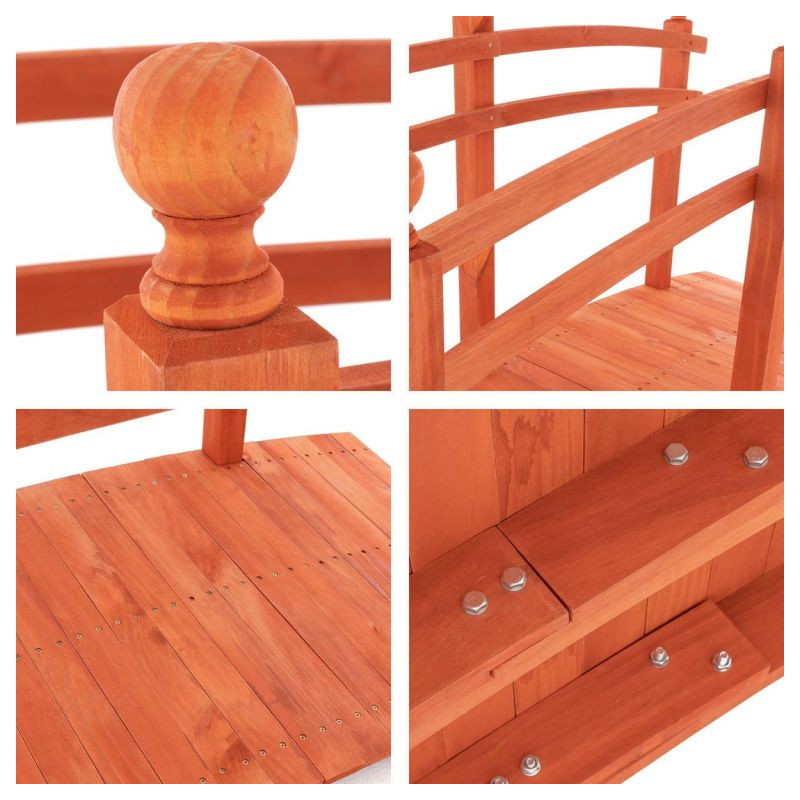 Dekoratívny záhradný mostík z masívneho mäkkého dreva bude spestrením na Vašej záhrade. Stabilné zábradlia dodávajú mostíku pekný dizajn a podporujú jeho pevnosť. Ideálny na premostenie potoka, kvetinového záhonu alebo len pre ozdobenie Vašej zelenej plochy.