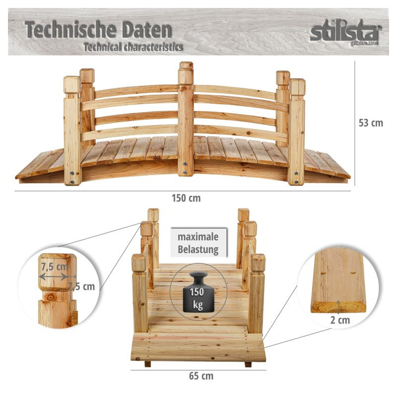 Tento krásny, drevený mostík bude výraznou dekoráciou, ktorá oživí Vašu záhradu. Je odolný voči poveternostným vplyvom. Mostík je vyrobený z borovicového dreva. Je ideálnou okrasou pre Váš rybník, záhon alebo záhradu.