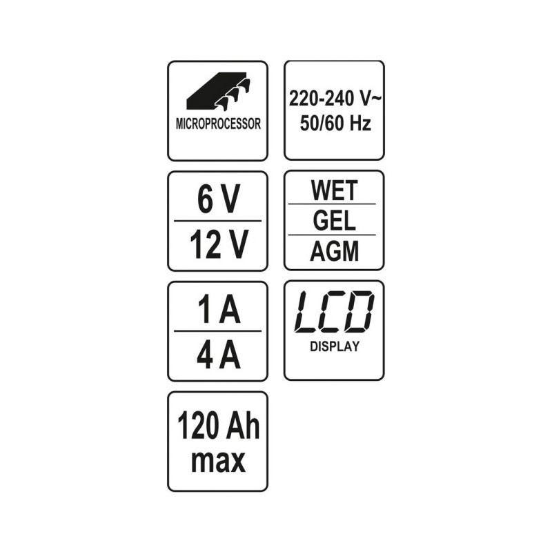 Nabíjačka je vybavená vstavanou mikroprocesorovou elektronikou, vďaka ktorej zaisťuje mikroprocesor cielené nabíjanie bez toho, aby došlo k prebitiu alebo poškodeniu akumulátora. Zaisťuje tým optimálne podmienky na ochranu a udržanie akumulátora v perfektnej kondícii. Medzi ďalšie užitočné funkcie patrí test batérie, alternátora a štartu.