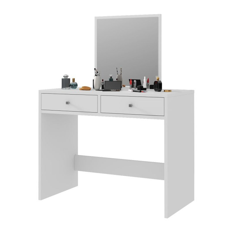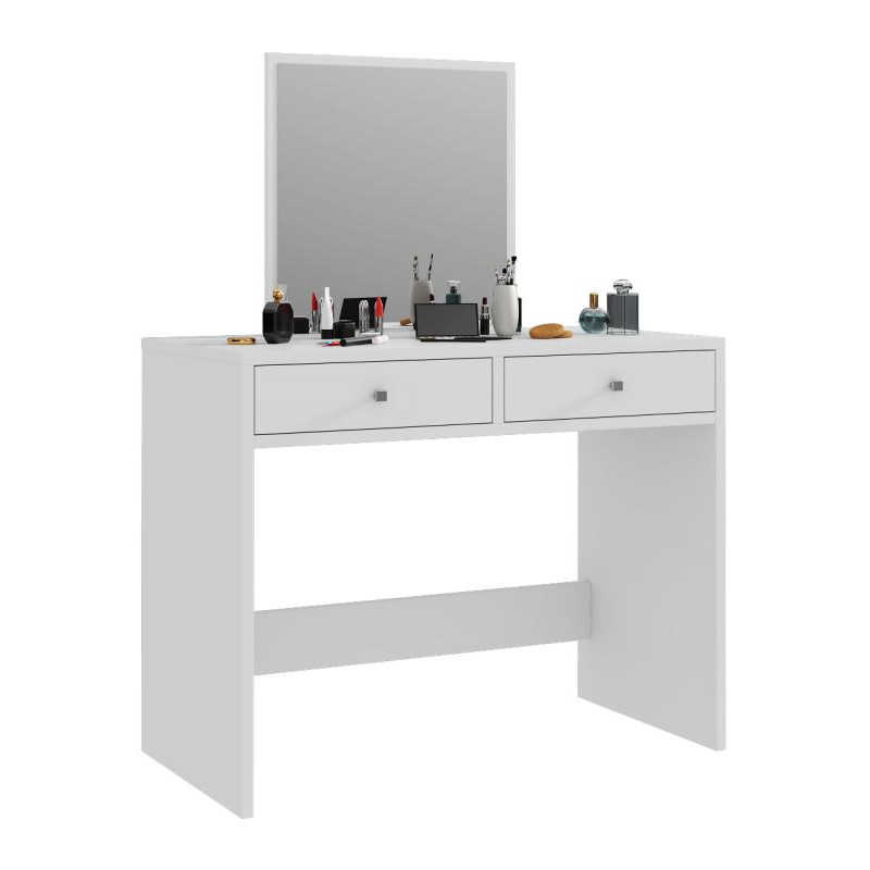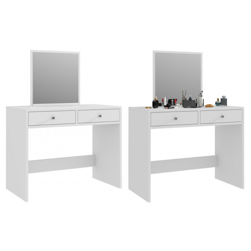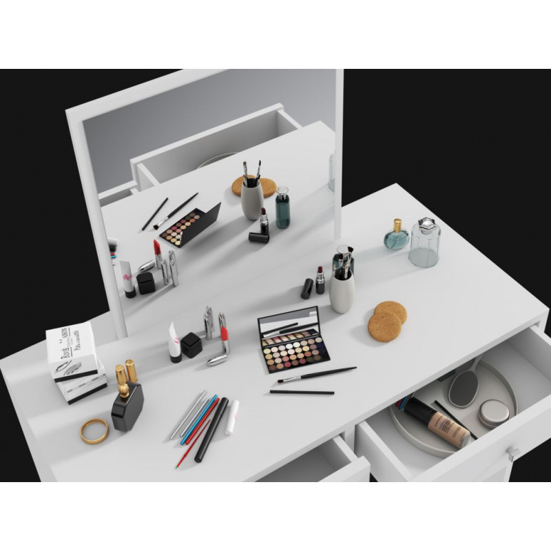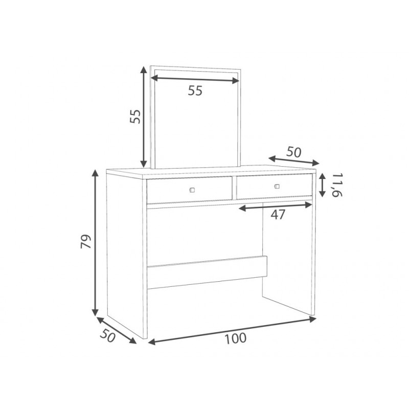 Vlastnosti:Priestranné zásuvky: dve široké, pohodlne výsuvné zásuvky pojmú všetku potrebnú kozmetiku, štetce, šperky a vlasové doplnky.