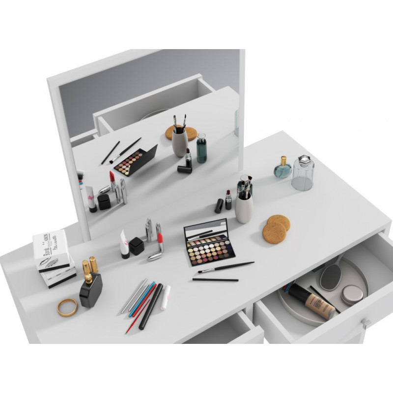 Tento toaletný stolík je synonymom funkčnosti a elegancie - umožní vám vytvoriť si doma skutočnú profesionálnu kozmetickú a kozmetickú stanicu a zároveň bude ozdobou interiéru. Vďaka robustným materiálom a precíznemu spracovaniu vydrží dlhé roky a jeho univerzálny dizajn sa hodí do každého štýlu interiéru.