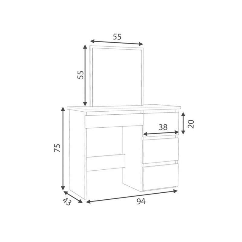 Kozmetický toaletný stolík so zrkadlom a štyrmi priestrannými zásuvkami je nevyhnutnosťou pre každú ženu, ktorá si chce doma alebo v byte vytvoriť pohodlný priestor na líčenie. Vďaka svojmu univerzálnemu dizajnu tento kus nábytku dokonale zapadne do interiéru kozmetického salónu, spálne alebo izby pre mladých.