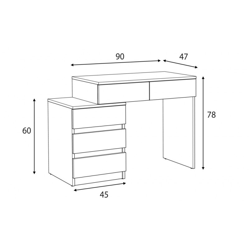 Využite priestor svojej izby naplno vďaka veľkej, ergonomicky navrhnutej vrchnej doske a piatim priestranným zásuvkám. Jeden stôl - dve možnosti montáže: umiestnite vrchnú dosku na pravú alebo ľavú stranu v závislosti od dispozičného riešenia miestnosti.