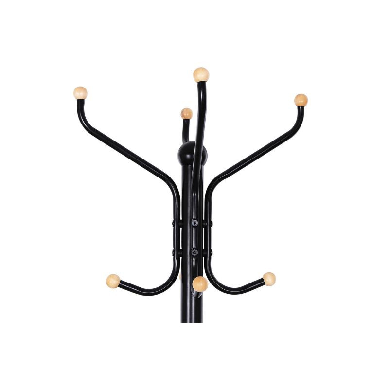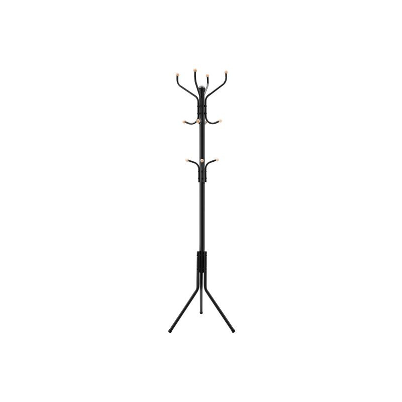 Hľadáte elegantné a pritom praktické riešenie na usporiadanie oblečenia, tašiek či klobúkov? Kovový vešiak SONGMICS s výškou 182 cm je ideálnou voľbou do predsiene, spálne, kancelárie alebo hotela. Jeho moderné čierne prevedenie a drevené koncovky háčikov chránia odevy pred poškodením a dodávajú nadčasový vzhľad.