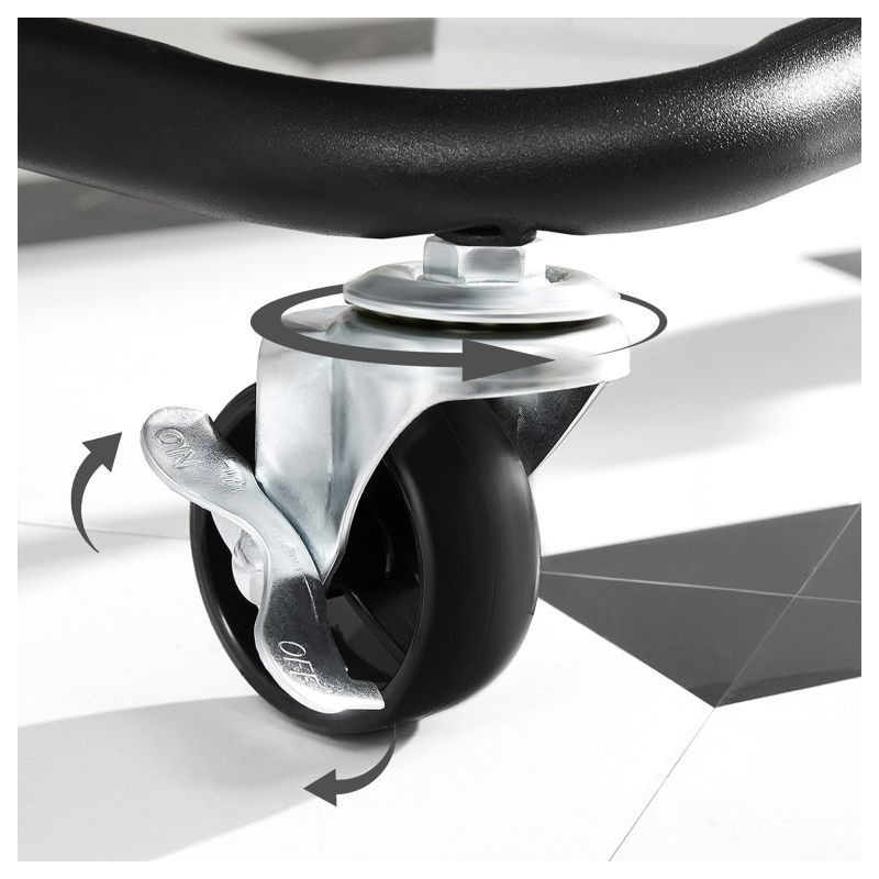 Vysokokvalitná oceľová konštrukcia a plastové police zaručujú pevnosť a stabilitu. Montáž trvá len pár minút vďaka prehľadnému návodu. Kolesá s brzdami umožňujú bezpečné zastavenie a každá polica unesie až 10 kg.