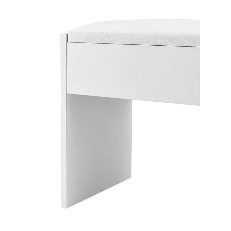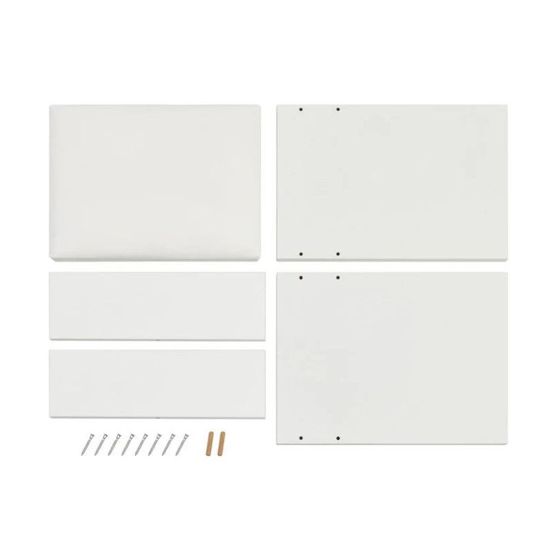 Robustná konštrukcia z bielych drevených dosiek zaisťuje dlhú životnosť a jednoduchú údržbu. Povrch je odolný proti poškriabaniu a ľahko sa čistí. Montáž je rýchla a zvládne ju každý behom pár minút. Ochranné nôžky chránia podlahu pred poškodením.
