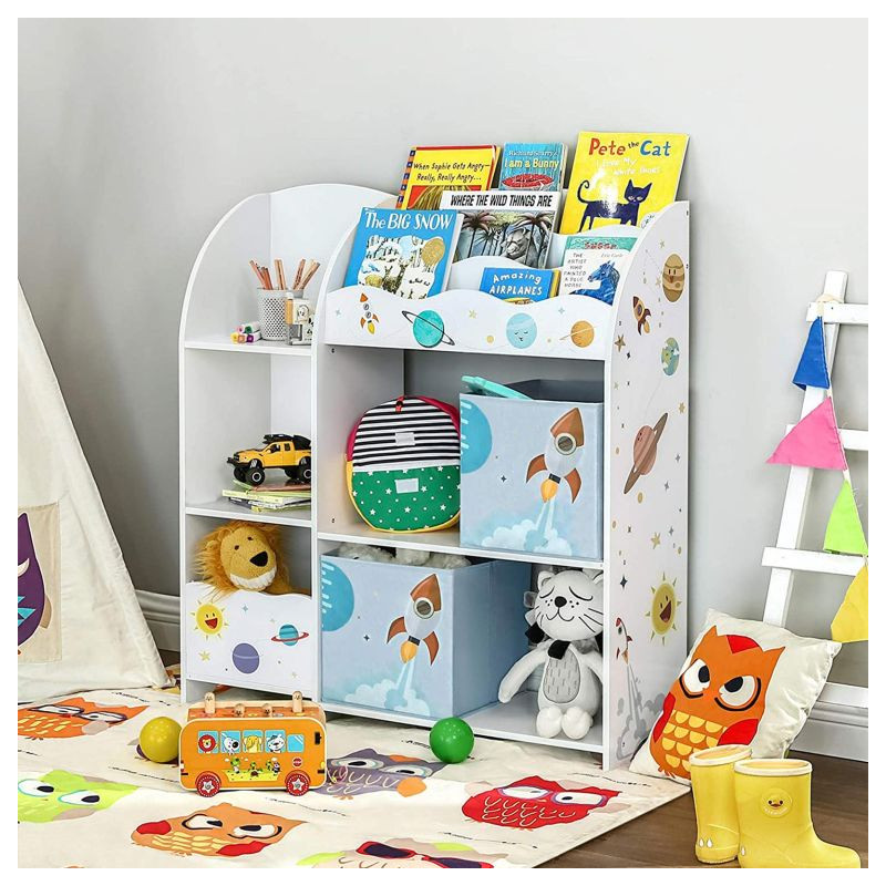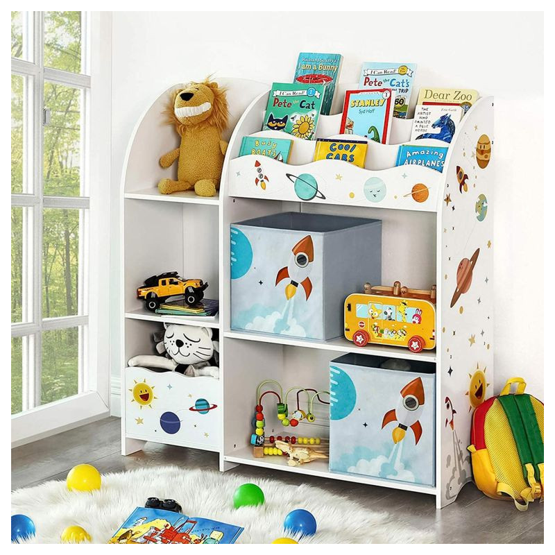 Vytvorte deťom miesto plnej fantázie a poriadku. Tento regál s motívom vesmíru premení upratovanie hračiek na zábavu a podporí detskú samostatnosť. Priestranné priehradky a šuplíky umožnia uložiť knihy, plyšáky aj stavebnice, zatiaľ čo hravý dizajn rozvíja detskú predstavivosť.