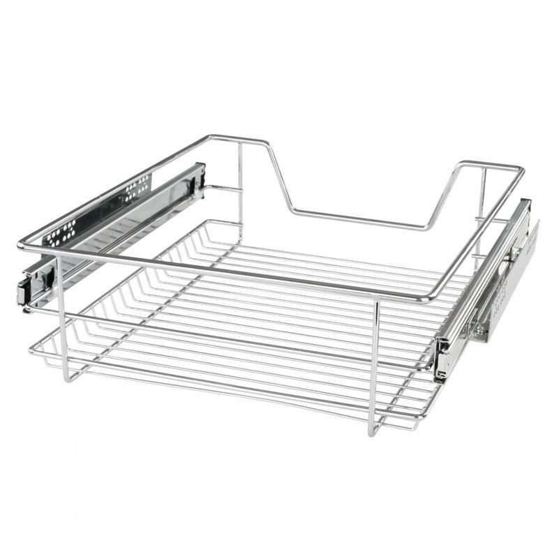 Táto zásuvka zaisťuje poriadok nielen v kuchynskej skrini, ale využitie nájde aj v spálni alebo v obývacej izbe. Vďaka svojej teleskopickej funkcii je možné ju ľahko vytiahnuť a zasunúť späť. Je tu priestor pre potraviny, domáce potreby a mnoho ďalšieho. Naše zásuvky vyrobené z robustného pochrómovaného kovu s maximálnou nosnosťou 20 kg uľahčia usporiadanie predmetov v zásuvke.
