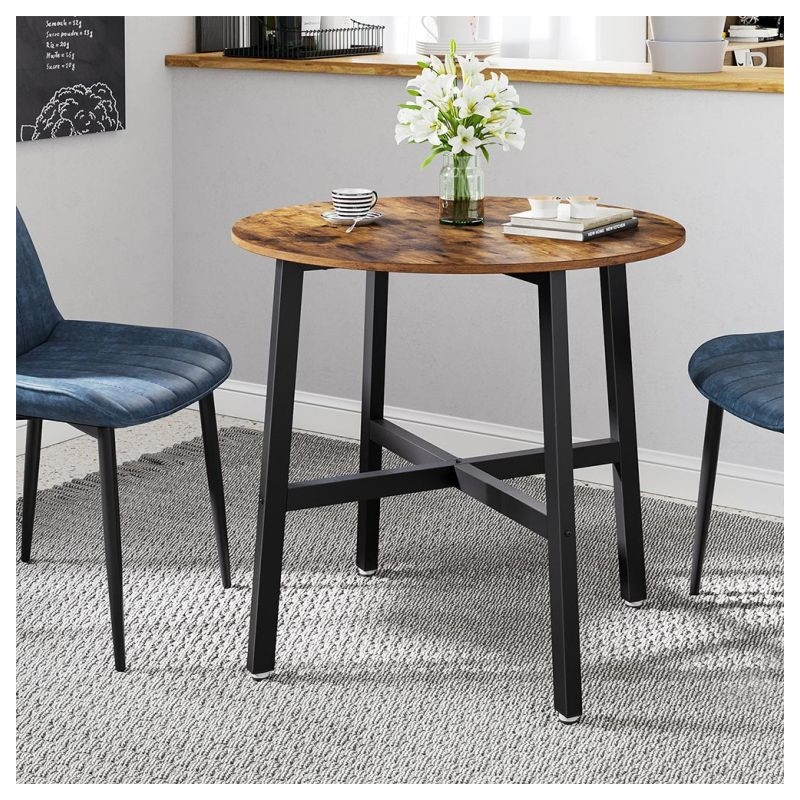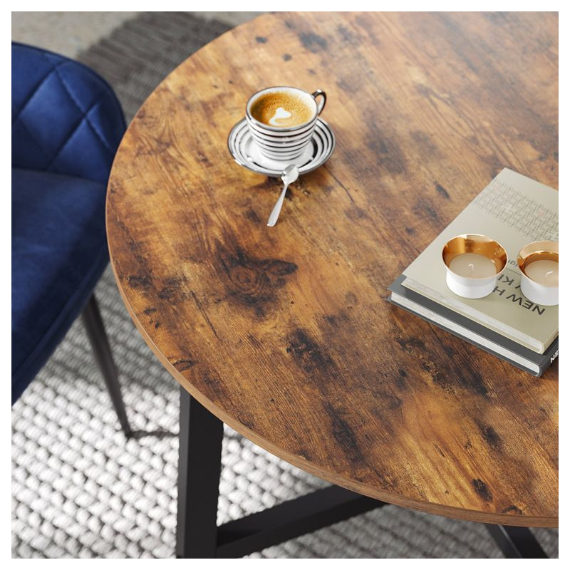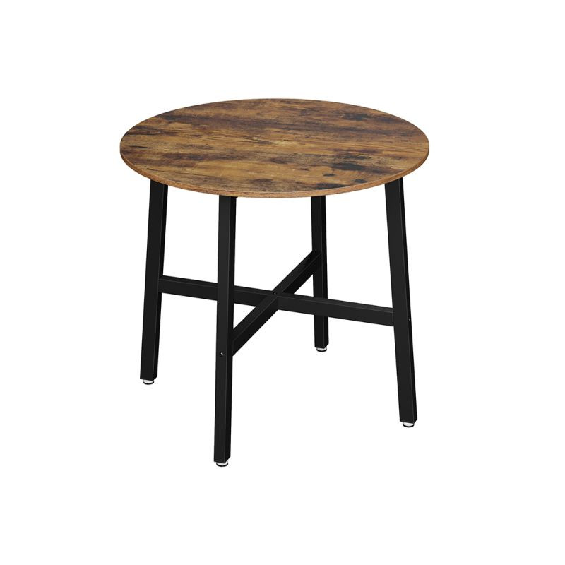 Vychutnajte si spoločne strávené chvíle pri stole, ktorý kombinuje moderný industriálny štýl s útulným nádychom dreva. Tento okrúhly jedálenský stôl vytvára priestor pre prirodzenú konverzáciu, zdieľanie zážitkov a príjemné rodinné večere. Jeho rustikálna hnedá povrchová úprava a čierna oceľová konštrukcia dodávajú každému interiéru osobitý charakter.