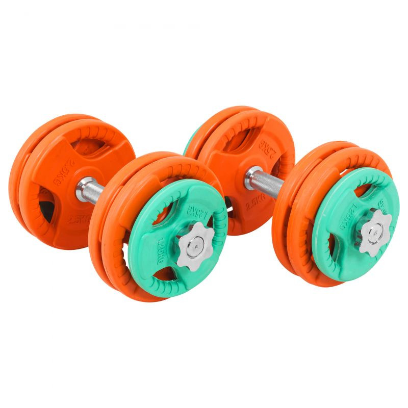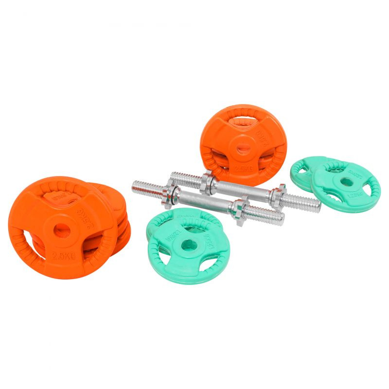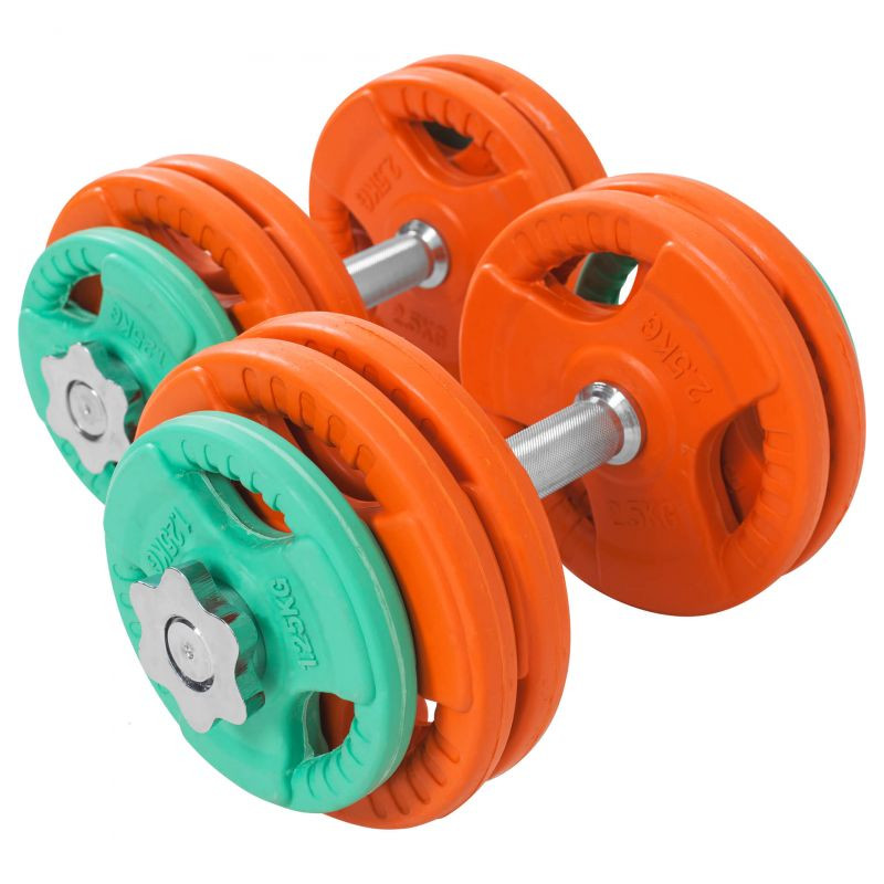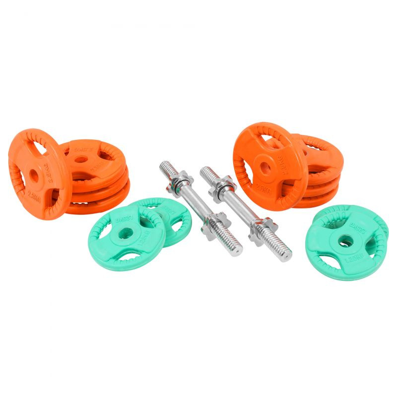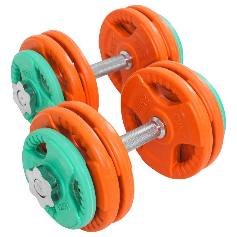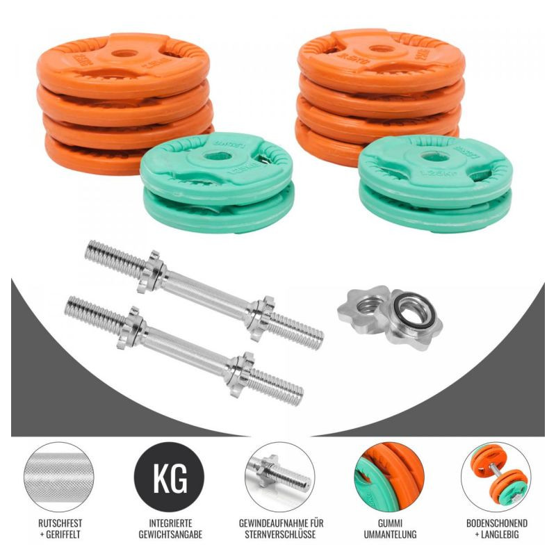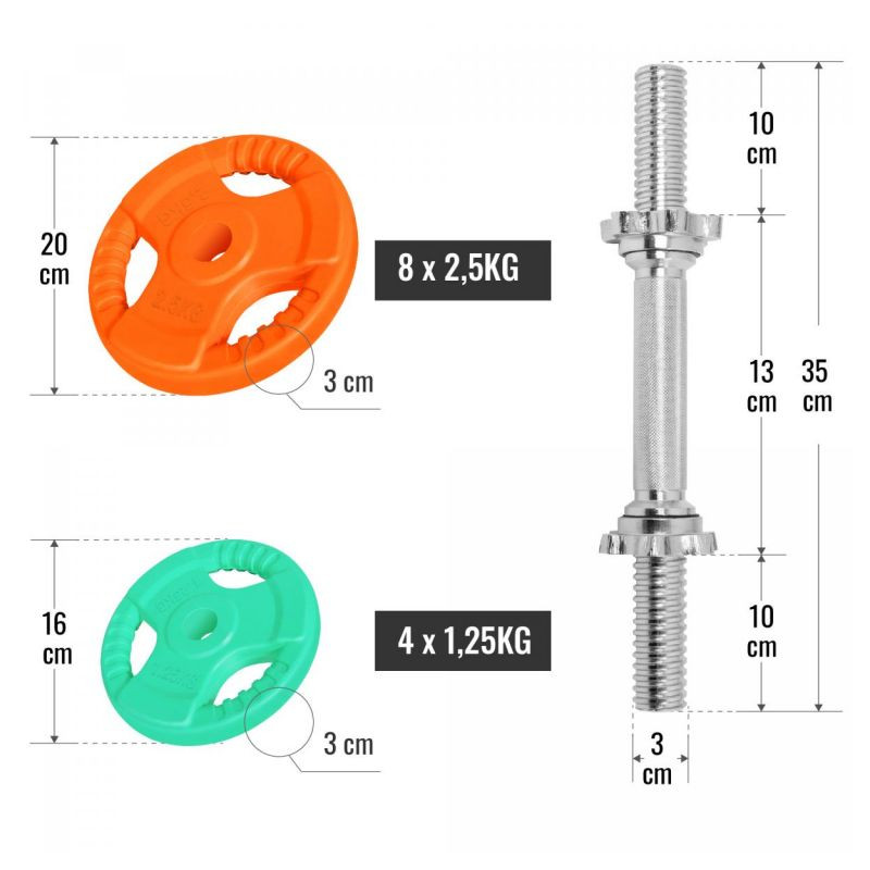 Sada činiek s hviezdicovými uzávermi a pogumovanými GRIP kotúčmi o váhe 30 kg od spoločnosti Gorilla Sports vám ponúka rozsiahle možnosti tréningu s voľnými váhami. Obe činkové osi môžu byť individuálne vybavené až štyrmi kotúčmi a umožňujú teda voľnosť v úprave váhy a sú ideálny pre začiatočníkov i pre profesionálov. Štyri hviezdicové uzávery zaisťujú že závažie je pevne upevnené a umožňujú jednoduchú výmenu.