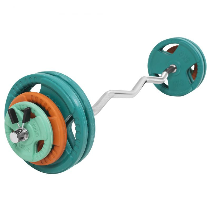 8 závaž9 a EZ tyč sú perfektnou kombináciou pre vaše nadchádzajúce cvičenia k vypracovaniu tricepsu a bicepsu. Je to predovšetkým tyč SZ, ktorá vám poskytuje vynikajúcu službu, pretože zakrivený tvar je šetrný ku kĺbom a väzom a poskytuje uhly cvičenia vďaka ktorým bude váš tréning paží oveľa intezívnější.