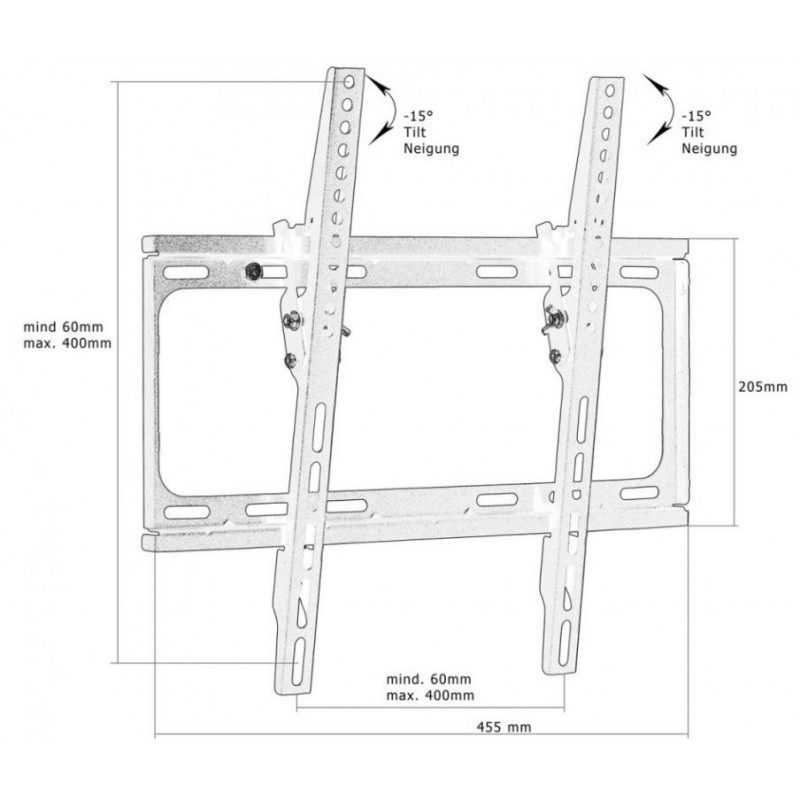 Tento nástěnný držák je kompatibilní s těmito normami VESA: 75x75 / 100x100 / 200x100 / 200x200 / 400x200 / 300x300 / 400x300 / 400x400