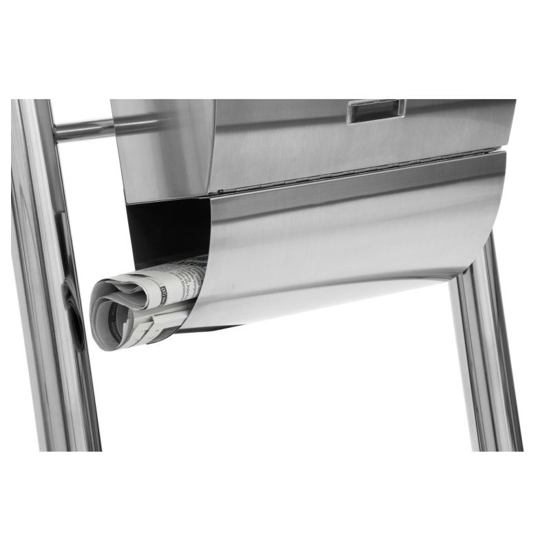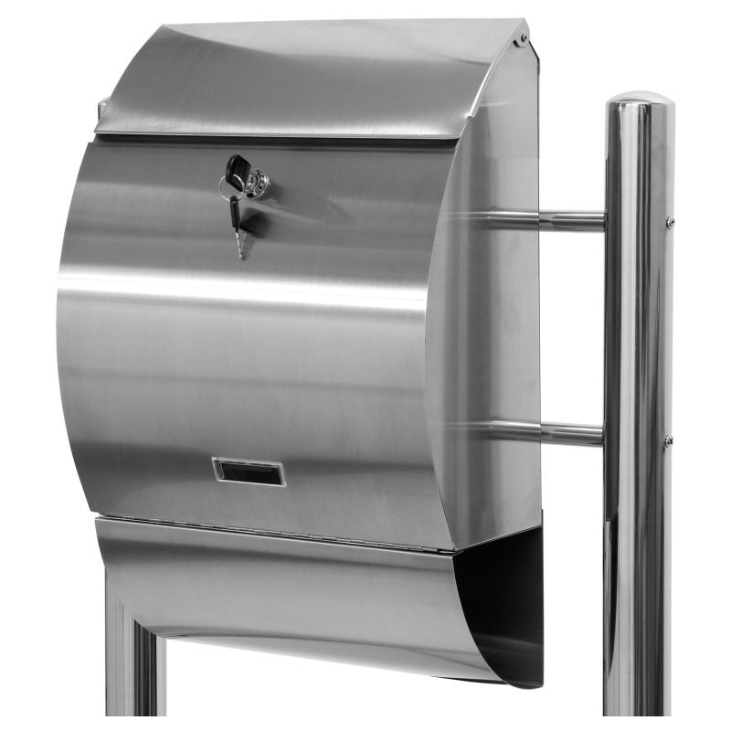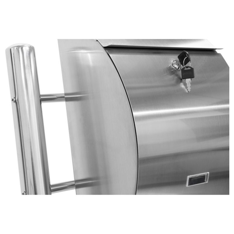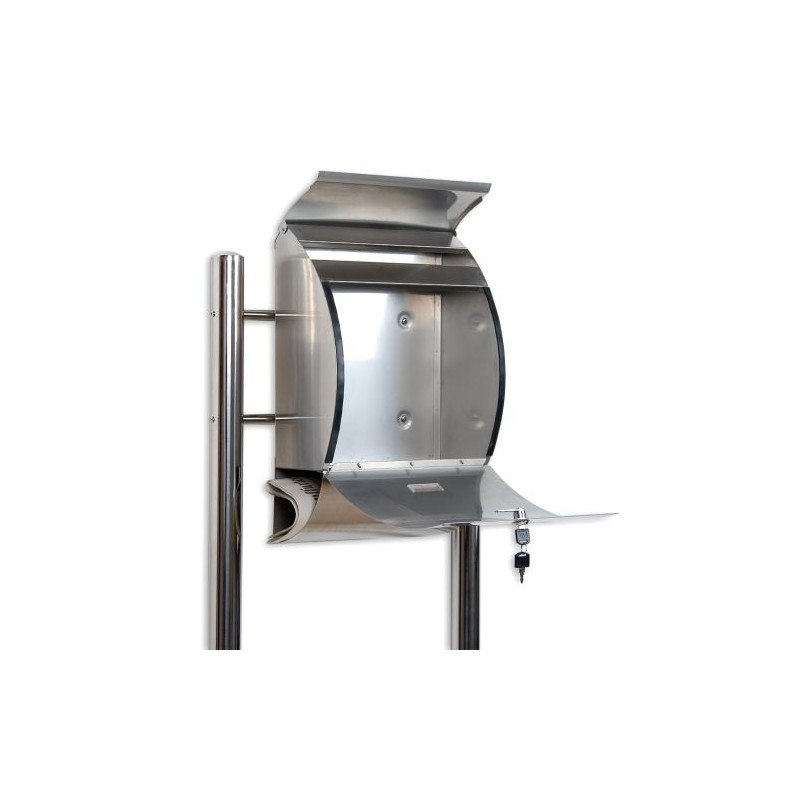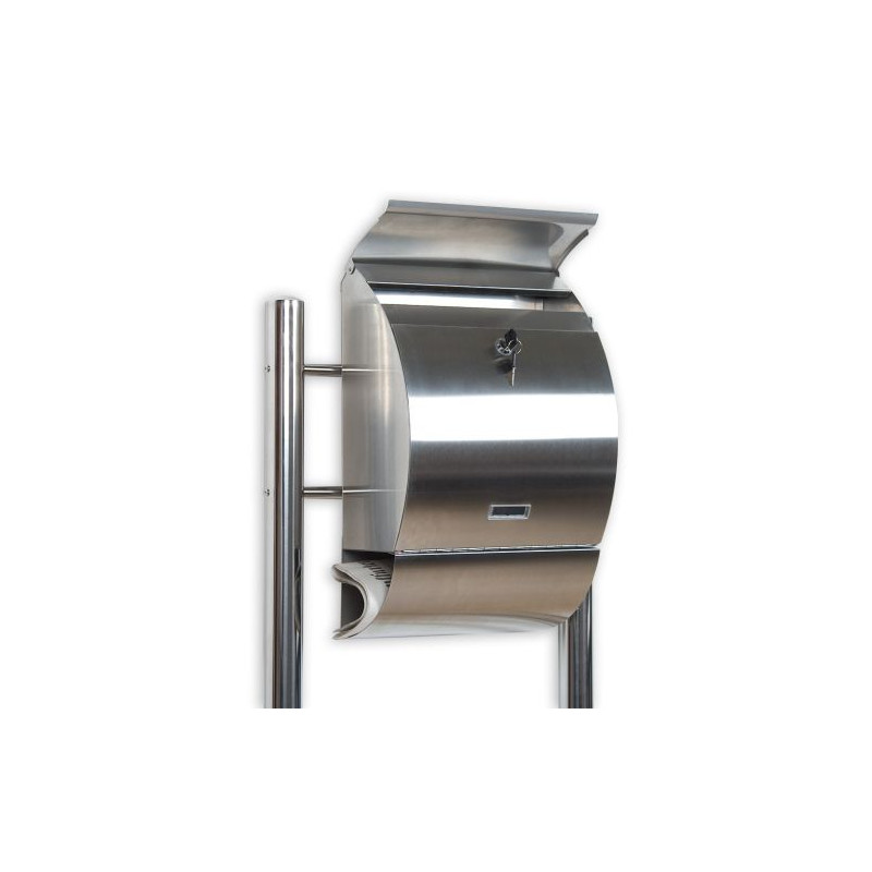 Poštová schránka vyrobená z vysoko kvalitnej nerezovej ocele. Moderný, nadčasový a elegantný design. Schránka je uzamykateľná a vzhľadom k jej vysokej kapacite vhodná aj pre firmy. Je veľmi kvalitne spracovaná. Na zadnej strane sú otvory, ktoré umožňujú schránku upevniť k priloženému stojanu. Možné primontovať aj k stene.