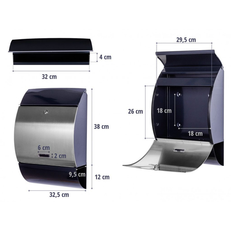 Poštová schránka má veľký otvor na listy, a preto je vhodná aj pre veľké listy a silnejšie obálky. Naša poštová schránka je tiež vybavená novinovou rolkou, ktorá chráni noviny a brožúry pred poveternostnými vplyvmi. Je tiež vybavený štítkom a gumovými lištami, ktoré chránia pred vlhkosťou a nečistotami.