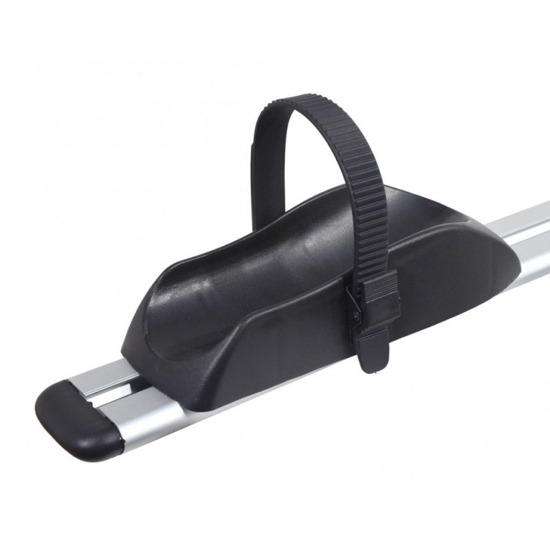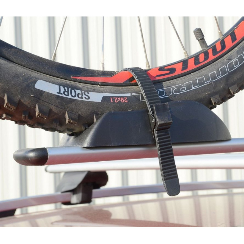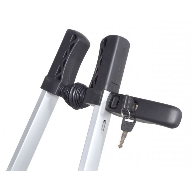 Univerzálny strešný nosič pre bicykel s jednoduchým systémom upevnenia. Upevnenie kolesa do nosiča sa vykonáva pomocou držiaka na rám a jednoduchých objímok s fixačnou sponou, ktorú je možné upevniť aj jednou rukou. Mechanizmus je uzamykací a nehrozí tak odcudzenie kolesa. Nosič je vhodný pre všetky bicykle, nepresahujúce hmotnosť 15 kg. Nosič je precízne zhotovený z hliníka striebornej farby, umožňuje uchytenie ako na klasický strešný nosič pomocou U strmeňov, tak aj na nosiče s T drážkou 20 mm.