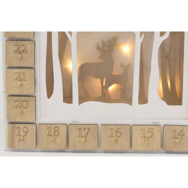 Zažite kúzlo adventu s týmto originálnym dreveným kalendárom s lesnou tematikou. Každý deň prináša radosť vďaka detailnému spracovaniu a jemnému LED osvetleniu. Napájanie batériami a praktický časovač zaisťujú jednoduché a pohodlné používanie. Perfektný doplnok na vytvorenie sviatočnej atmosféry v každom interiéri.