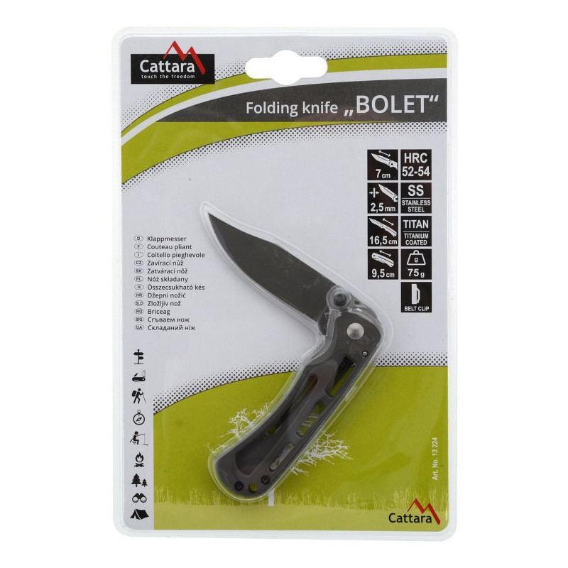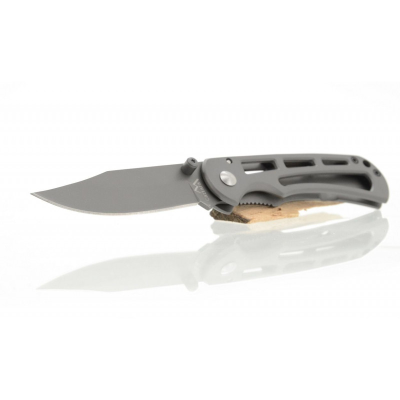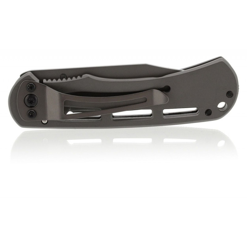 Čepeľ noža je zhotovená z nožiarskej ocele 420J2, dĺžky 7 cm o hrúbke 2,5 mm. Materiál dosahuje tvrdosti HRC52-54 a je obzvlášť vhodný do nepriaznivého prostredia, kde exceluje svojou odolnosťou voči korózii, navyše je potiahnutý titánovým povrchom. Vďaka výstupku na boku čepele je možné otvorenie noža jednou rukou. Nôž je vybavený poistkou, ktorá sa ovláda bočným posunom palca v spodnej časti rukoväte. Rukoväť s atraktívnou perforáciou oboch strienok, na zadnej strane vybavená štipcom na prichytenie za okraj vrecka, opaska a pod. Strienky sú kvalitne spracované z nožiarskej ocele 420J1 potiahnutej titánom.