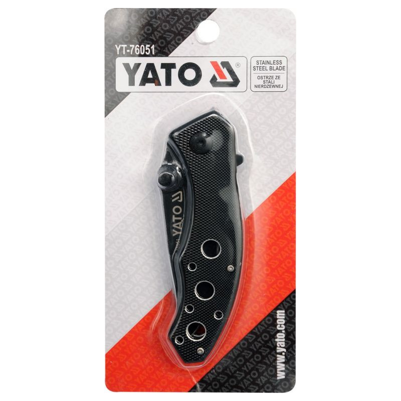 Nôž je určený predovšetkým pre milovníkov nožov a fanúšikov značky YATO. Čepeľ je zhotovená z kvalitnej nehrdzavejúcej ocele lakovanej do matnej, čiernej farby a je vybavená výstupkami z vrchnej aj spodnej strany, ktoré zamedzujú skĺznutiu ruky a možnému poraneniu pri používaní.