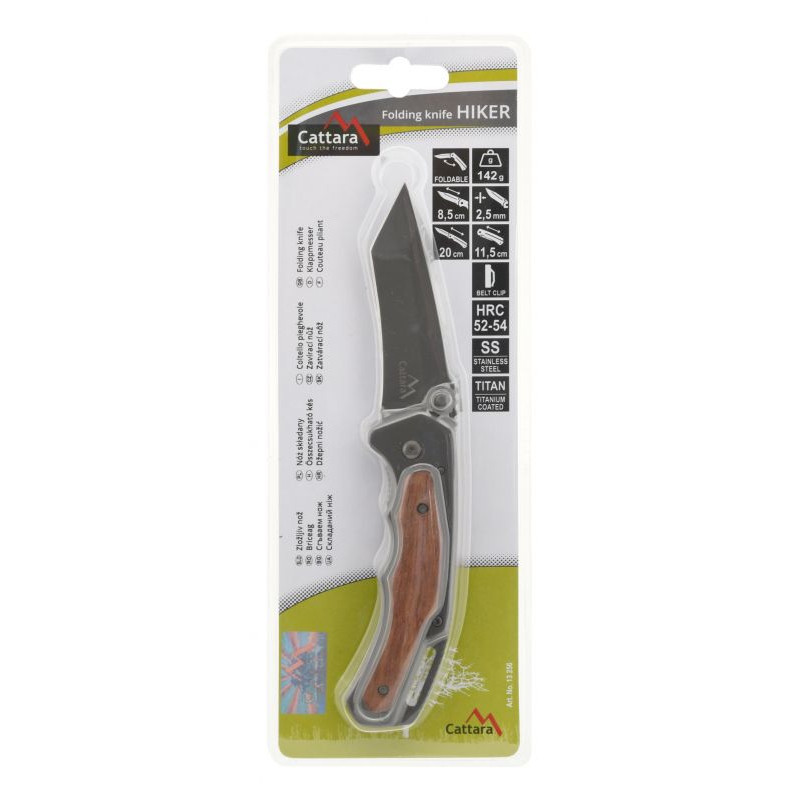 Vďaka výstupkom na bočnej časti čepele je možné jednoduché otvorenie noža. Nôž je vybavený poistkou, ktorá sa ovláda bočným posuvom palca v spodnej časti rukoväte. Rukoväť je doplnená štipcom na prichytenie za okraj vrecka, opaska a pod. Strienky sú kvalitne spracované z dreva uložého na rukoväti z nerezovej ocele potiahnutej titánom.