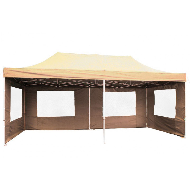 Praktický záhradný párty stan s nožnicovou konštrukciou, vďaka ktorej stan veľmi ľahko a rýchlo postavíte a opäť zložíte. Stan Vám poskytne dostatok tieňa v sparných dňoch, ochranu pred večerným prievanom a môže slúžiť aj ako ochrana proti miernemu vetru a dažďu. Stan nie je určený do nepriaznivého počasia ako sú silné dažde, vetry a búrky. Nikdy stan nenechávajte bez dozoru.