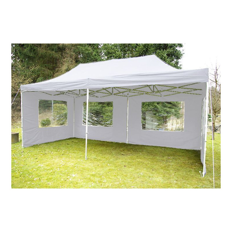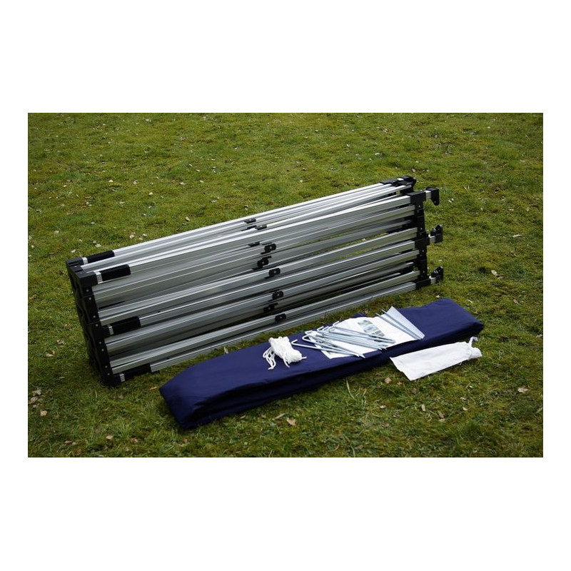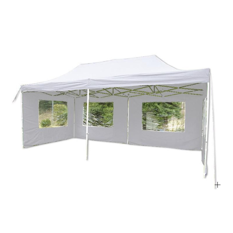 Praktický záhradný párty stan s nožnicovou konštrukciou, vďaka ktorej stan veľmi ľahko a rýchlo postavíte a opäť zložíte. Stan Vám poskytne dostatok tieňa v sparných dňoch, ochranu pred večerným prievanom a môže slúžiť aj ako ochrana proti miernemu vetru a dažďu. Stan nie je určený do nepriaznivého počasia ako sú silné dažde, vetry a búrky. Nikdy stan nenechávajte bez dozoru.