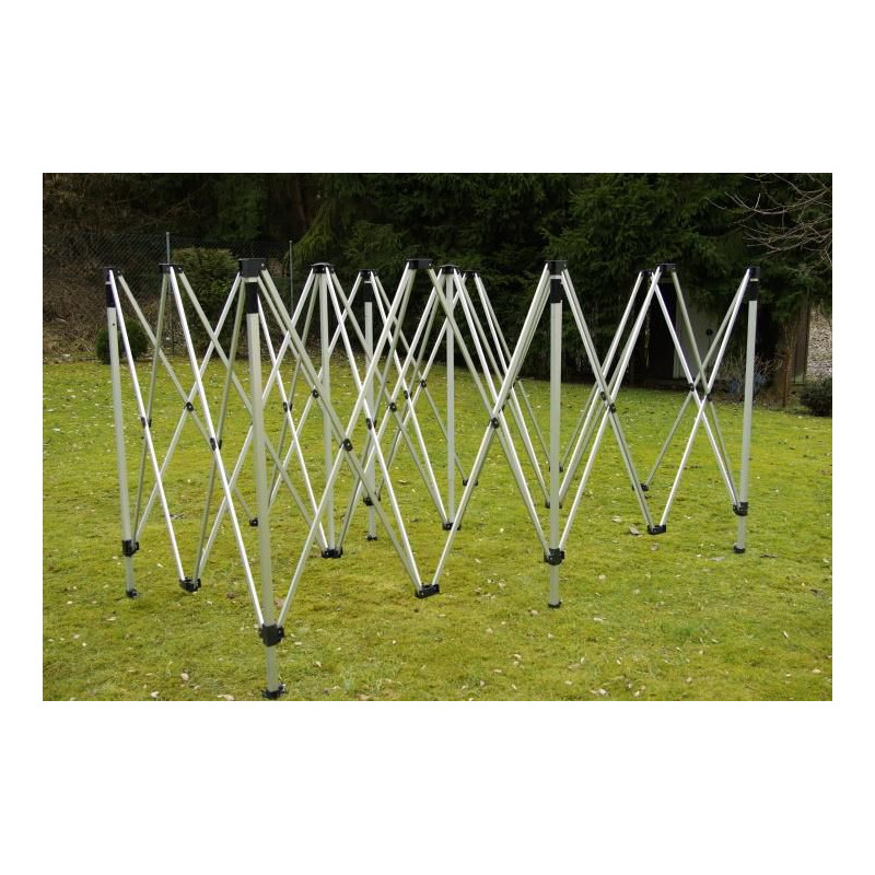 Záhradný stan, ktorý je možné vďaka nožnicovému systému počas pár minút postaviť a opäť zložiť. Stan je ideálny na festivaly, pikniky a všetky akcie na záhrade, pláži alebo pre stánkový predaj. V letných dňoch Vám poskytne dostatok tieňa a vo večerných hodinách Vás ochráni pred chladom a prievanom. Stan je vodeodolný s robustnou hliníkovou nožnicovou konštrukciou. Bočnice sa na stan pripevňujú prostredníctvom klipu a suchých zipsov. Nohy stanu je potrebné upevniť k zemi kolíkmi. Stan je kompletne uzatvorený zo všetkých strán.