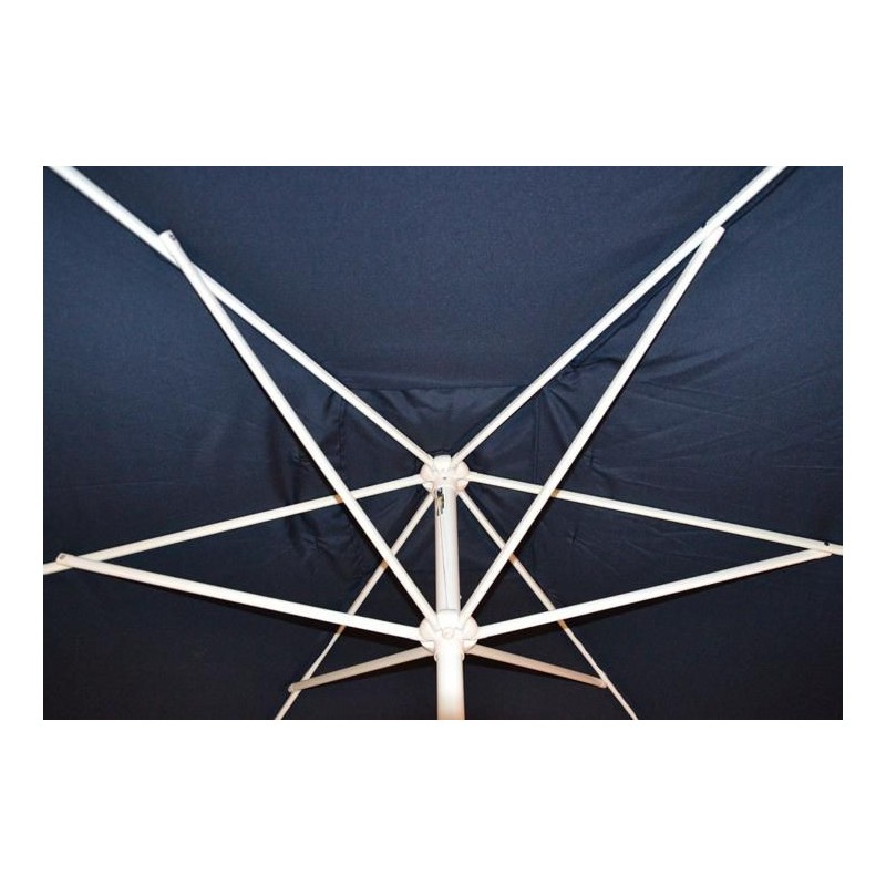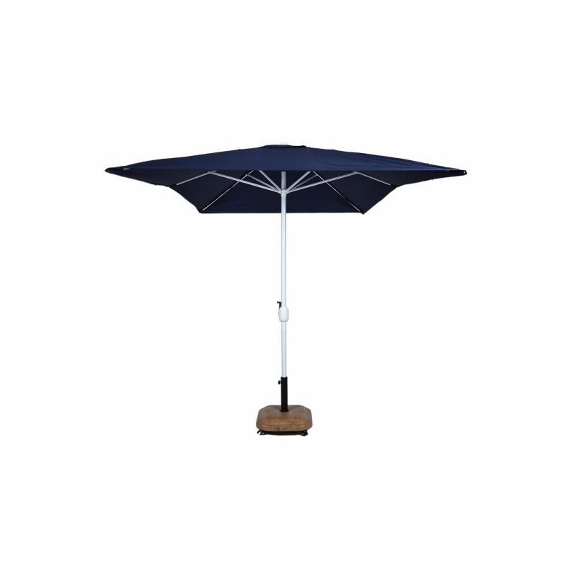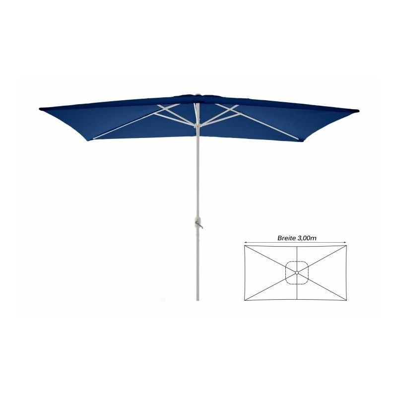 Tento slnečník v sýtej modrej farbe je vďaka svojmu obdĺžnikovému tvaru vhodný najmä na terasy a balkóny. Slnečník možno jednoducho zatvoriť alebo otvoriť vďaka integrovanej kľučke. Tkanina slnečníka je vyrobená zo 100 % polyesteru s gramážou, ktorá chráni tkaninu pred pôsobením vlhkosti a robí z nej kvalitný materiál s dlhodobou životnosťou. Vďaka tvaru konštrukcie je slnečník odolnejší proti miernym poveternostným podmienkam a už by sa nemalo stávať, že Vám vietor "obráti" slnečník a poláme konštrukciu.