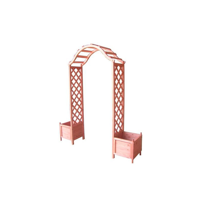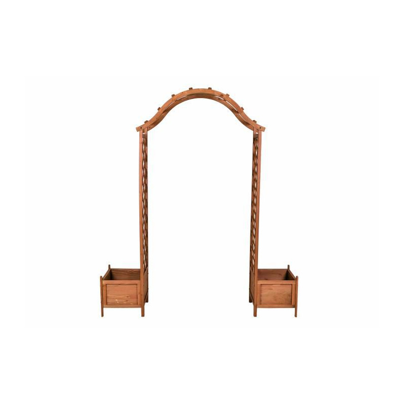 Kúpte si masívnu, prekrásne spracovanú vchodovú pergolu s dvoma kvetináčmi, vďaka ktorým sa po nej môžu popínať najrôznejšie kvetiny. Umiestnite tento okrasný záhradný oblúk ku vchodu do dvora, na terasu alebo do záhrady, fantázii sa medze nekladú. Záhradnú pergolu zmontujete sami ľahko a rýchlo, je veľmi stabilná so starostlivo prepracovanými detailami. Slúži predovšetkým ako mriežka pre okrasné rastliny.