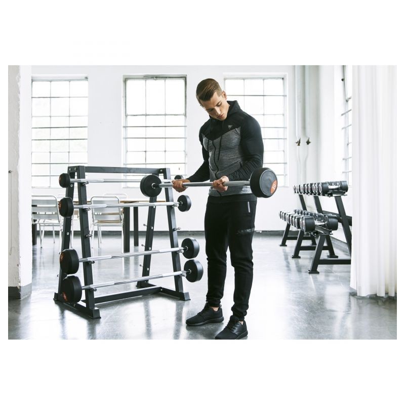 Štýlová pogumovaná bicepsová činka Gorilla Sports vo variantách od 10 do 50 KG. Pogumovaný povrch prináša zvýšenú odolnosť činky, ktorá je tak vhodná pre fitness štúdiá, komerčné posilňovne a ďalšie prevádzky s maximálnym vyťažením. Chrómovaný vrúbkovaný povrch úchopu zvyšuje bezpečnosť pri používaní činky.