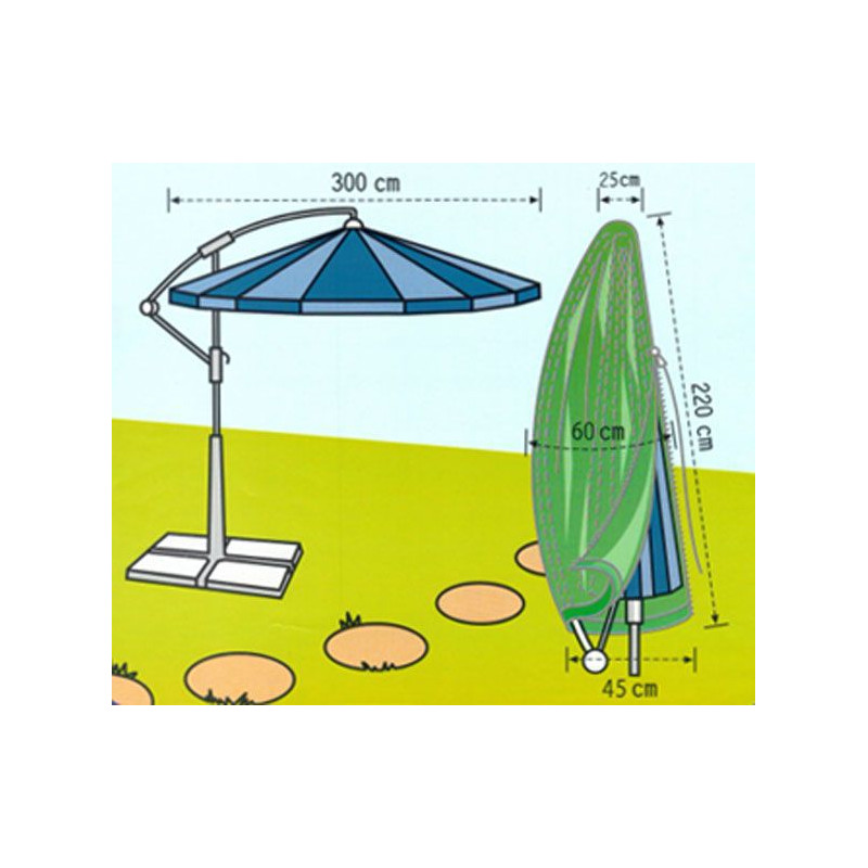 Kvalitný obal na zips z pevnej polyesterovej tkaniny ochráni Váš slnečník pred vplyvmi počasia.