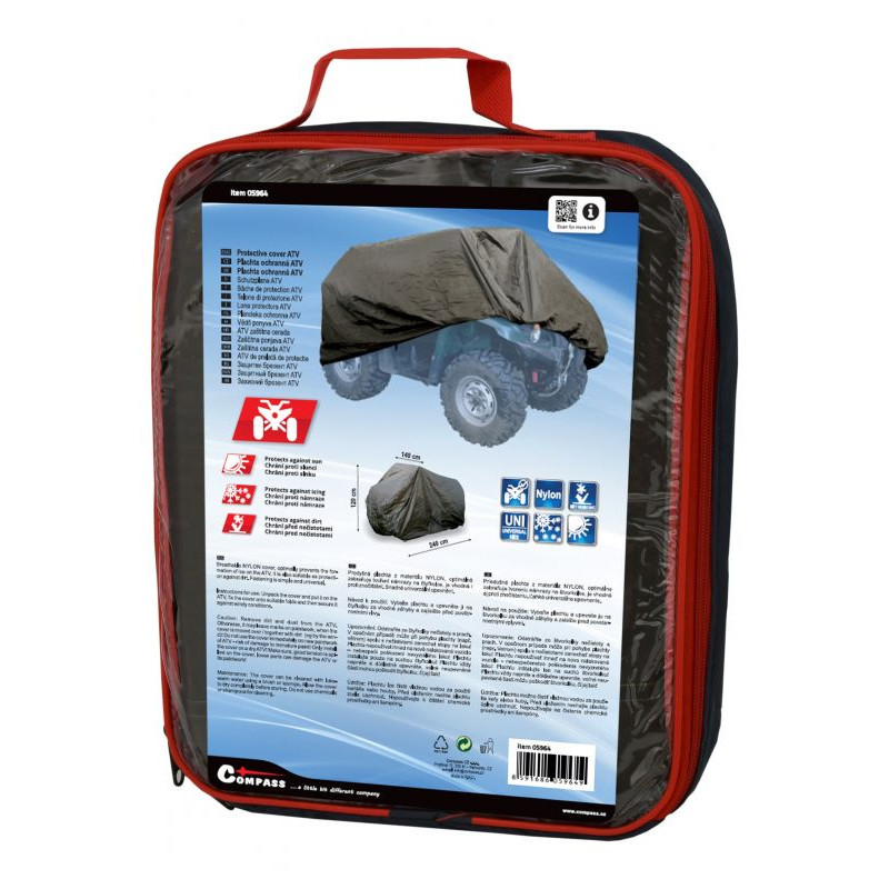 Priedušná plachta pre štvorkolku. Zabraňuje miernej vlhkosti a námraze, vhodná proti znečisteniu. Chráni celú štvorkolku proti poveternostným vplyvom a pred UV žiarením. Jednoduché upevnenie plachty - iba sa nasadí na štvorkolku, na spodku sa upevní časť so všitou gumou za vhodné záhyby. Predná aj zadná časť plachty je osadená pevnými pútkami, pomocou ktorých je možné plachtu ešte pevnejšie upevniť, napríklad gumotahy a pod (nie sú súčasťou dodávky).