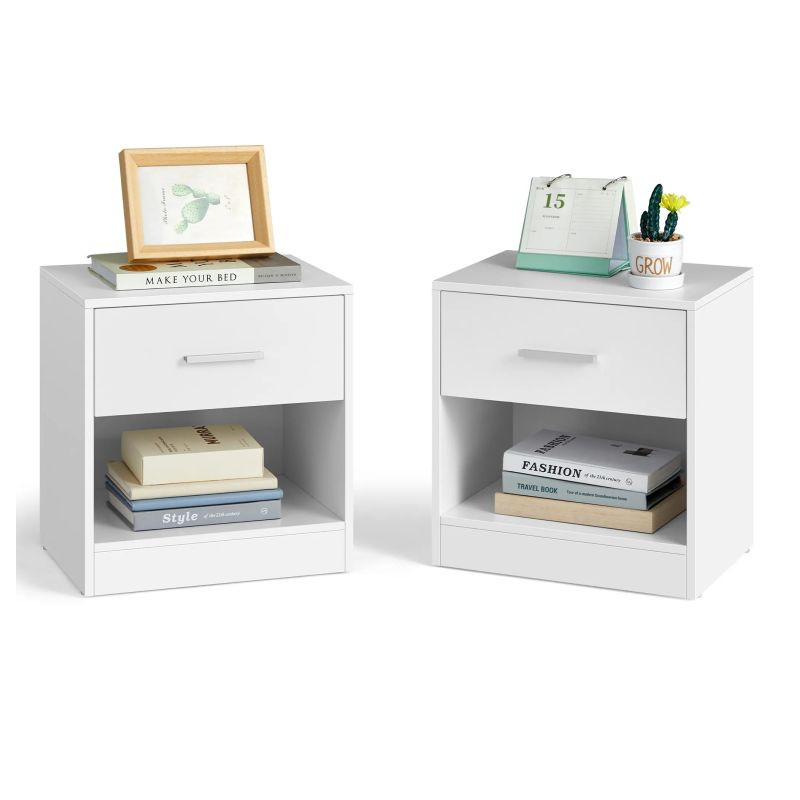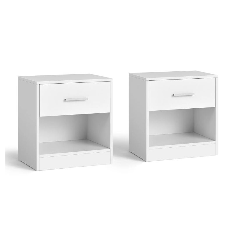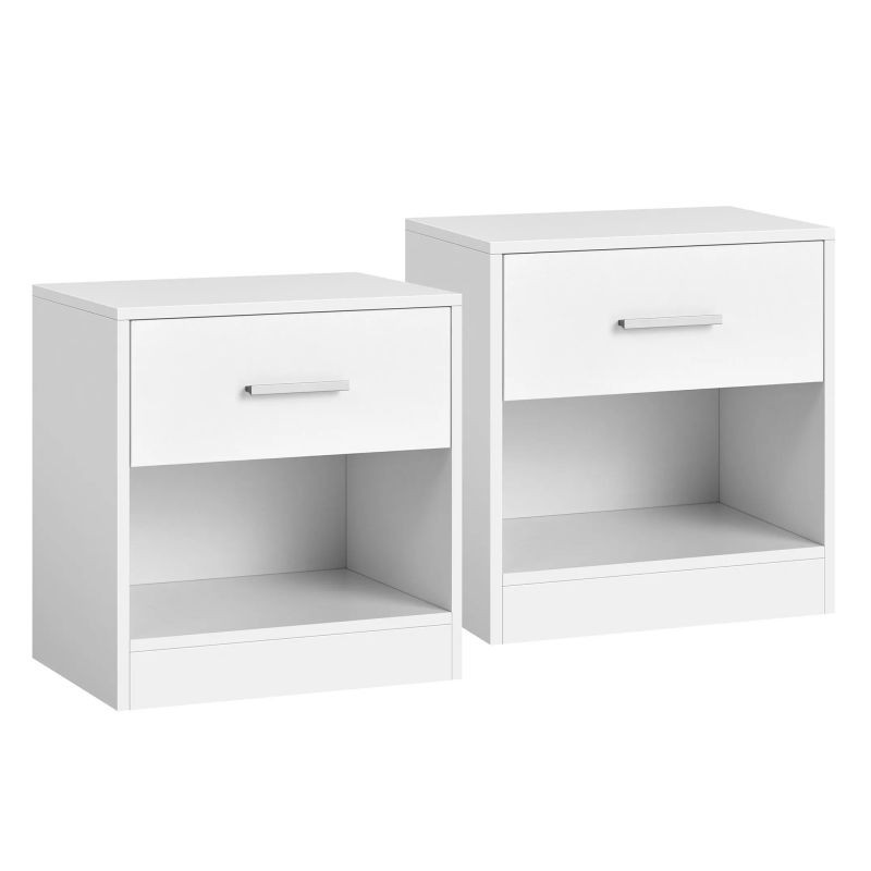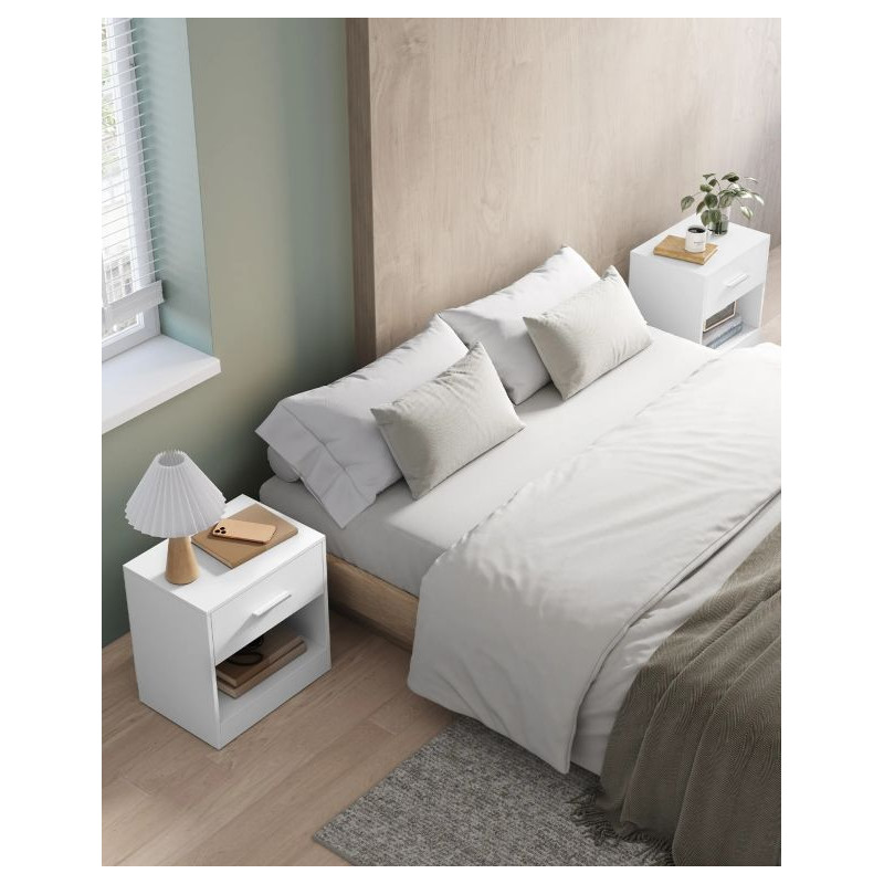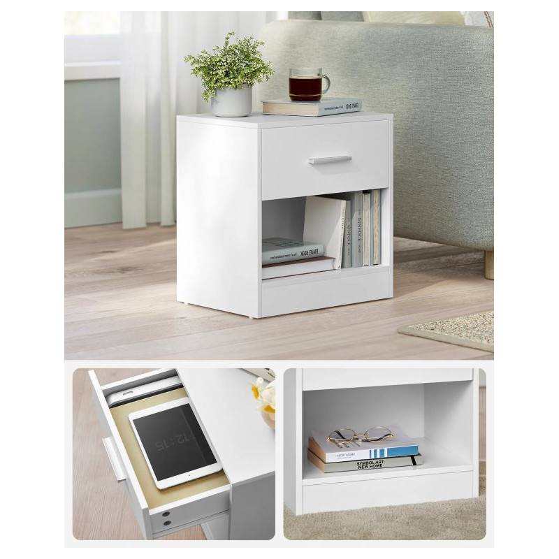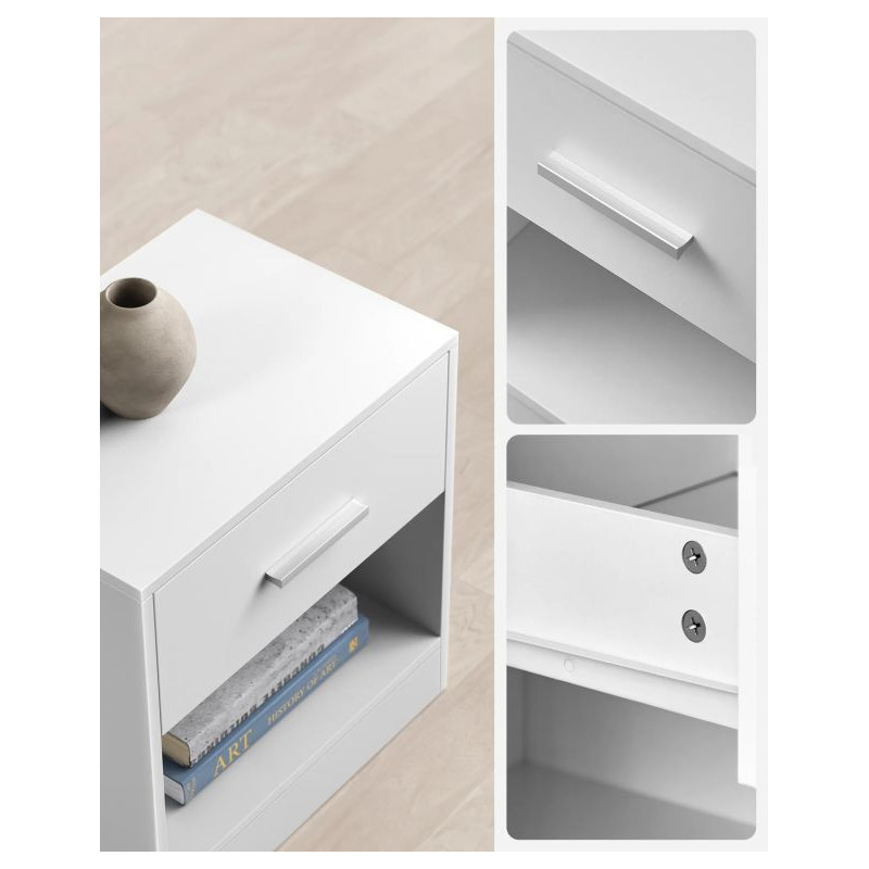 Stolíky sú vyrobené z kvalitnej drevotriesky a majú pevnú konštrukciu, ktorá zaručuje dlhú životnosť a jednoduchú údržbu. Zásuvka s tichým pojazdom umožňuje pohodlné otváranie. Zostavenie zvládnete rýchlo vďaka prehľadnému návodu a označeným dielom.