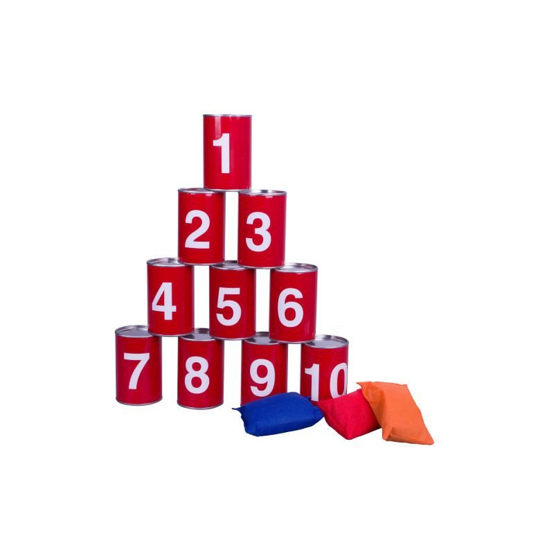 Klasika pre detskú narodeninovú oslavu alebo záhradnú slávnosť. Sada obsahuje 10 vzostupne číslovaných plechoviek a 3 hádzacie vrecúška v červenej, modrej a oranžovej farbe.