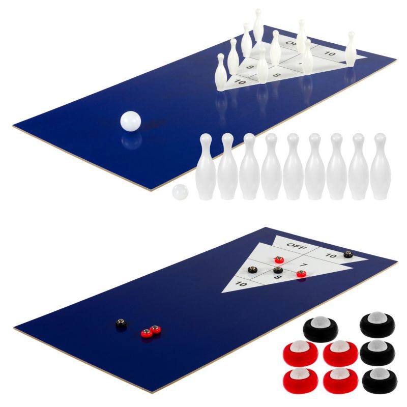 Tento veľký multifunkčný hrací stôl pre 15 hier je vhodný pre rodinu a aj hry s priateľmi! Hracie pole a všetko príslušenstvo (tága, gule, pálky, puk, karty, kocky, figúrky a mnoho ďalšieho) sú umiestnené prakticky pod každou hracou doskou, takže ich máte vždy po ruke. Stôl je vhodný do odpočinkovej miestnosti u Vás doma, ale aj do školy alebo družiny.