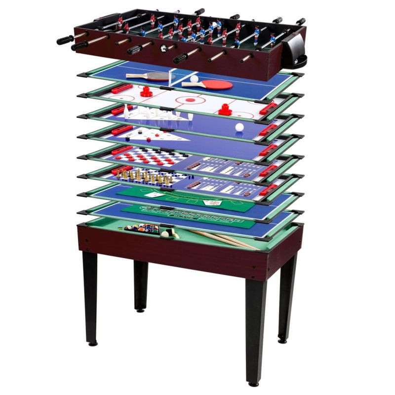 Či už zariaďujete detskú izbu, klubovňu, priestor družiny alebo víkendovú chatu, nezabudnite na multifunkčný herný stôl, ktorý skrýva 15 skvelých hier a nekonečné chvíle zábavy. Herný stôl je prakticky skladný a množstvo hier a príslušenstva je dôvtipne umiestnené pod hracou doskou. Takže aj keď jednotlivé hry vyžadujú tága, gule, pálky, puky, karty, kocky, figúrky a ďalšie príslušenstvo, neznamená to, že budete potrebovať veľa miesta na uskladnenie. Zažijete množstvo zábavy s rodinou i priateľmi.