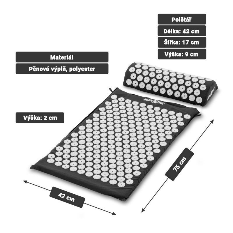 Vďaka pojazdnej taške na prenášanie už nikdy nezmeškáte odpočinok na ceste. 210 ihlových vankúšikov rovnomerne rozkladá váhu tela na podložke, a vďaka tomu pocítite skvelý účinok tejto masážnej podložky behom okamihu. Akupresúrna súprava MAXXIVA® je univerzálna a môžete ju použiť na hrudník, brucho, krk, chrbát, nohy, lýtka, ruky a mnoho ďalších oblastí. Pozrite sa aj na náš ďalší fitness tovar ako sú činky, bradlá, manžety na ruky, cvičebné lopty, podložky, balančné dosky, steppery a mnoho ďalšieho.