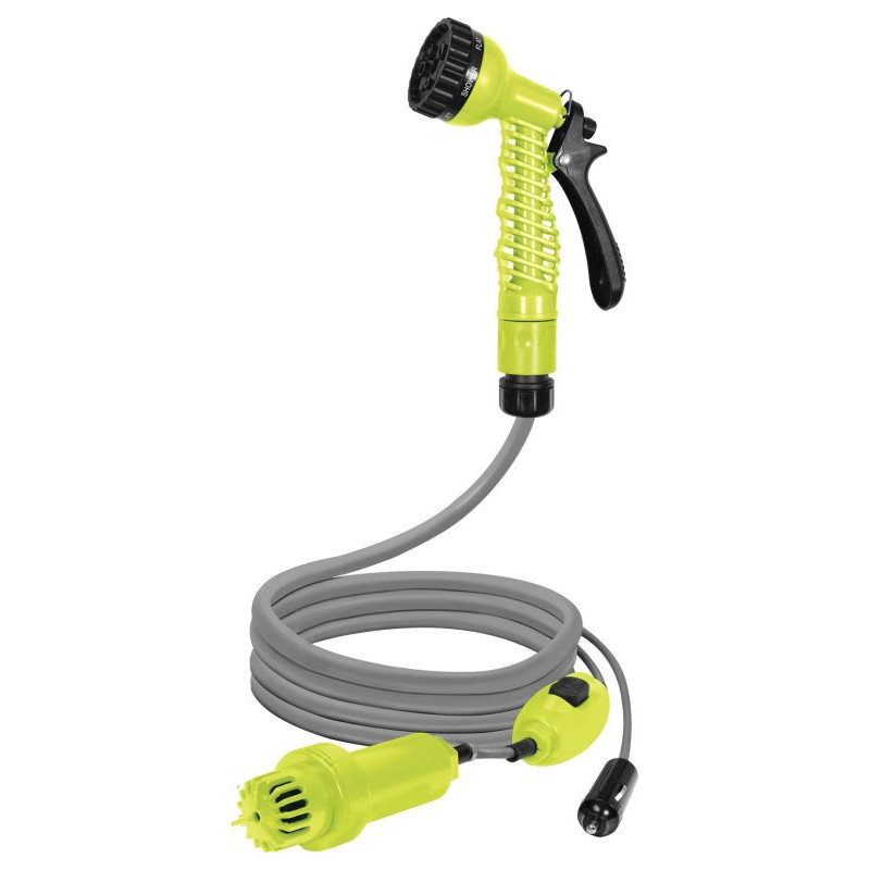 Prenosná sprcha vybavená elektrickým čerpadlom.