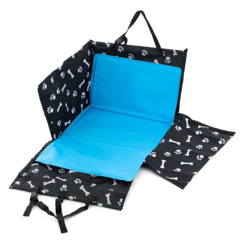 Tašku do auta možno použiť mnohými spôsobmi, či už ako ochranu proti zvieracím chlpom a nečistotám, alebo ako chladiacu tašku do auta na potraviny alebo nápoje. Vďaka postranným zipsom je možné z tašky vo chvíli vytvoriť polstrovaný poťah pre pohodlný odpočinok. Upevňovacie pásky možno v aute pripevniť podľa potreby a protišmykový povrch zaistí lepšiu stabilitu tašky a zabezpečí tak bezpečné miesto pre Vašeho miláčika. Účinok chladiacej podložky, ktorá je tiež súčasťou tašky, funguje po dobu niekoľkých hodín bez ďalších potrebných zdrojov a možno ju použiť do pelechu alebo psie búdy. Chladiaca podložka absorbuje telesné teplo a odvádza ho späť do vzduchu. Vďaka všestrannému využitiu ju môžete použiť ako podložku pod notebook. Podložka je vodotesná a na údržbu postačí iba vlhká handrička a saponát.
