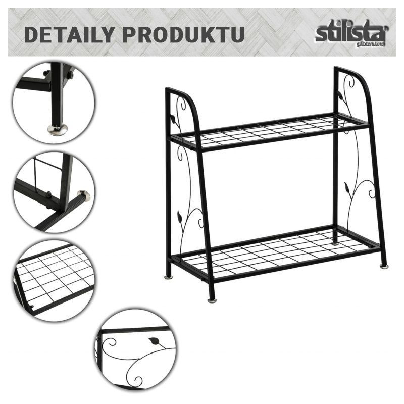 Náš stojan na kvety je vyrobený z odolného práškovo lakovaného oceľového rámu. Klasický dizajn políc sa štýlovo hodí do každého interiéru aj exteriéru. Police pre rastliny ponúkajú dostatok priestoru pre rastliny rôznych veľkostí a je možné ich použiť aj ako odkladacie police napr. pre dekoratívne prvky.
