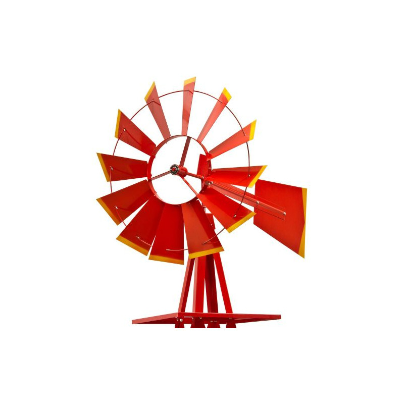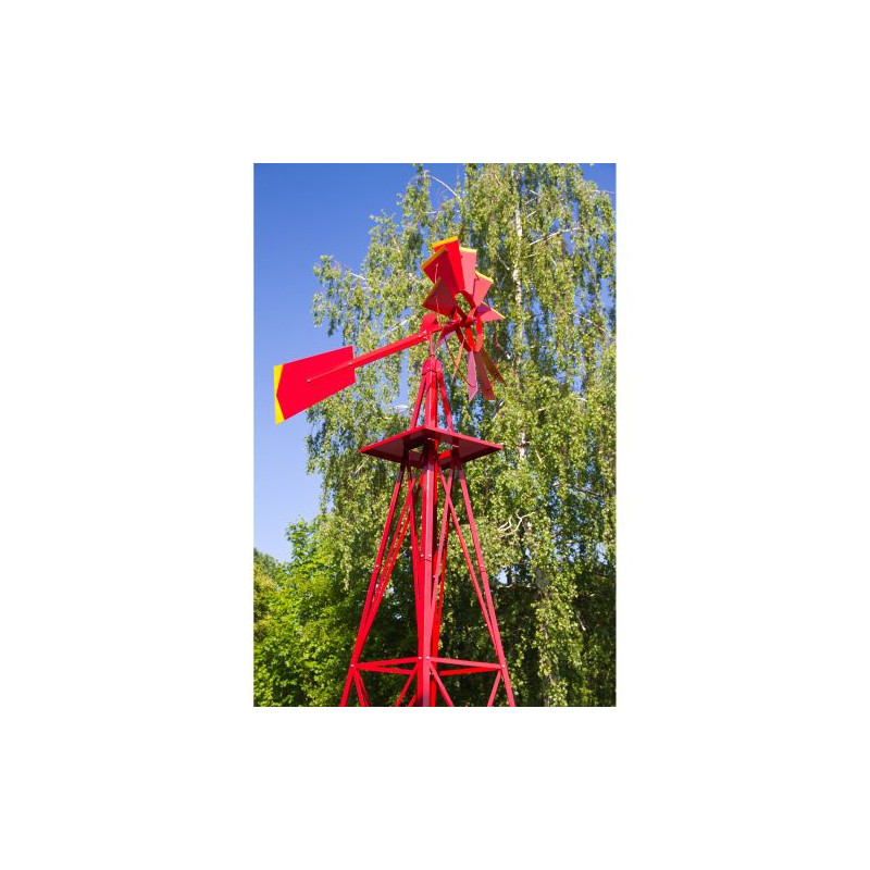 Obrovský veterný mlyn v americkom štýle! Tento veterník je kópiou amerických veterných mlynov, ktoré môžeme ešte dnes nájsť na mnohých amerických statkoch. Má dvojité guličkové ložisko a zavesenie má aj guličkové ložisko. To mu prepožičiava ľahkú a tichú prevádzku.