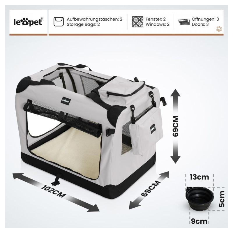 Leopet Prepravný box pre psov XXXL, 102 x 69 x 69 cm, sivý