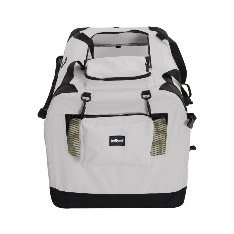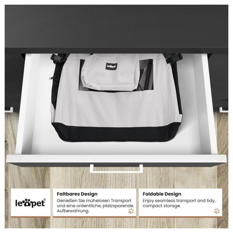 Objavte dokonalé riešenie na prepravu vašich chlpatých spoločníkov. Náš inovatívny prepravný box pre psov je vybavený praktickým skladacím mechanizmom, ktorý umožňuje bleskovú montáž a demontáž. Vďaka robustným oceľovým rúrkam ponúka maximálnu bezpečnosť a ergonomické rukoväte uľahčujú prenášanie. Odnímateľná podložka je umývateľná a má dve okná a troje dvierka pre optimálne vetranie a ľahký prístup. Prepravný box pre psov má integrovanú tašku a odnímateľný úložný vak a tiež vysoko kvalitnú misku z TPE, ktorá uhasí smäd vášho verného spoločníka. S týmto dobre navrhnutým prepravným boxom vám zaručíme nielen bezpečnosť, ale aj maximálne pohodlie na vašich cestách s vašim milovaným štvornohým priateľom.