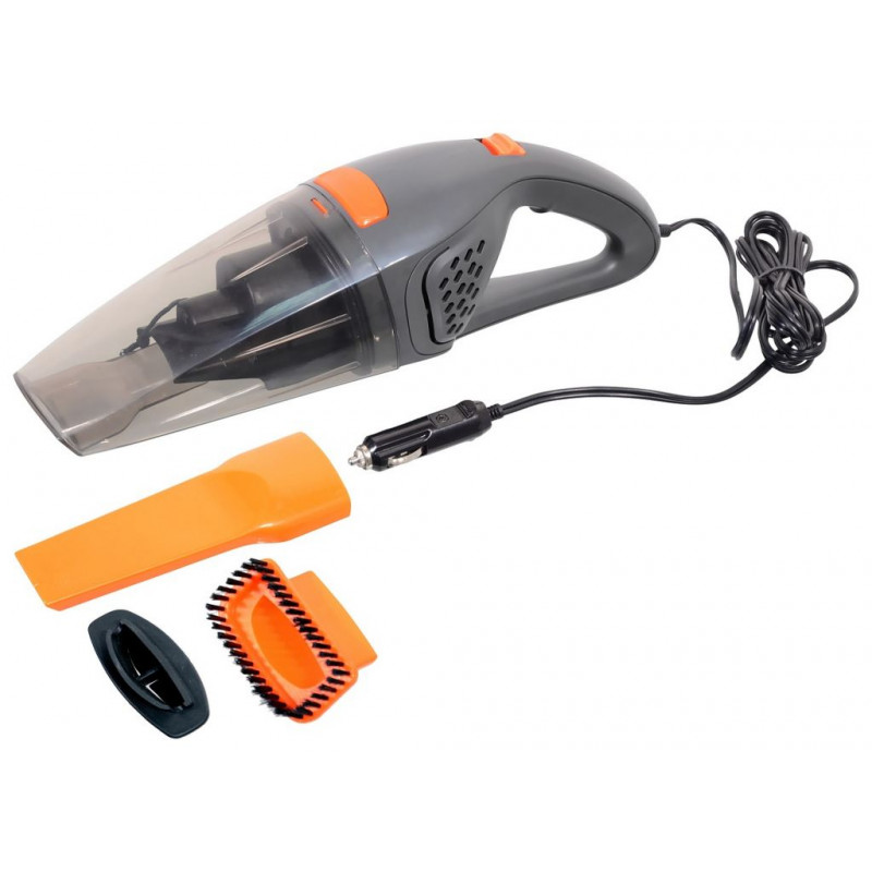 Prenosný vysávač s dlhým káblom a so zástrčkou do zásuvky automobilového zapaľovača 12 V. Ľahký, výkonný a veľmi praktický. Ideálne na čistenie automobilu od drobných nečistôt. Balenie obsahuje aj 3 rôzne hubica na rozmanité vysávanie – gumovú, dlhú úzku pre menej prístupné miesta a hubicu s kefou na veľmi znečistené povrchy.
