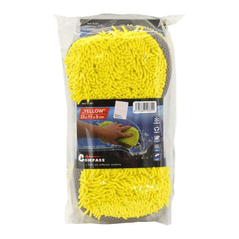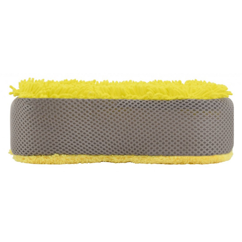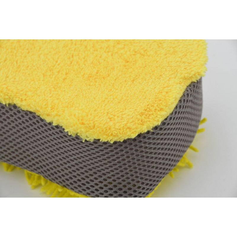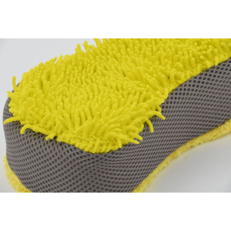 Obojstranná špongia so strapcami z mikrovlákna na jednej strane, jemnou vrstvou na druhej strane a sieťovými bokmi vhodná na komplexné umývanie. Umývacie špongie tvoria štandard, ktorý je použitím mikrovlákenných strapcov prekonaný, vďaka šetrnosti a dôkladnejším umývacím schopnostiam. Strapce z mikrovlákna absorbujú viac vody a nečistôt, než bežné umývacie pomôcky. Vďaka tomu chráni chúlostivú karosériu pred poškriabaním. Mikrovlákenné strapce umožnia použiť špongiu v suchom stave, ako účinnú prachovku. Jemná vrstva zadnej strany špongie, je v suchom stave vhodná napríklad na aplikáciu a roztieranie voskov i jemných lešteniek. Boky sú navyše opatrené mriežkovanou štruktúrou na očistenie odolných nečistôt. Špongia so strapcami je ideálna na použitie metódou dvoch vedier, kedy v jednom je voda s autošampónom a v druhom samotná voda na oplach zachytených nečistôt na špongii.
