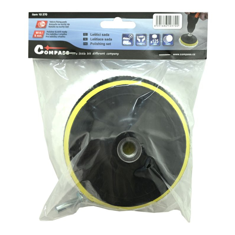 Súprava na jemné leštenie, voskovanie a aplikáciu sealantov laku automobilu. Súčasťou balenia sú 3 kusy chlpatých leštiacich kotúčov, unášací disk a adaptér M14/8 mm. Kotúče aj disk majú šírku 125 mm. Unášací disk je potom opatrený závitom M14 na upevnenie do bežnej leštičky, prípadne je možné pomocou adaptéra so stopkou 8 mm uchytiť do vŕtačky. Kotúče je možné ľahko prichytiť na unášací disk pomocou suchého zipsu.
