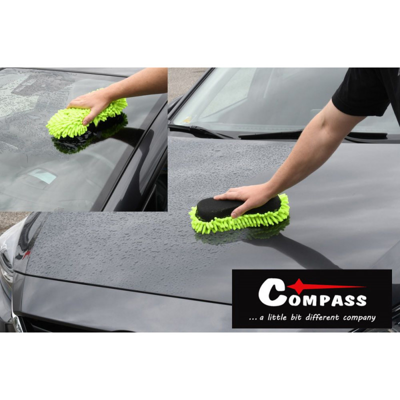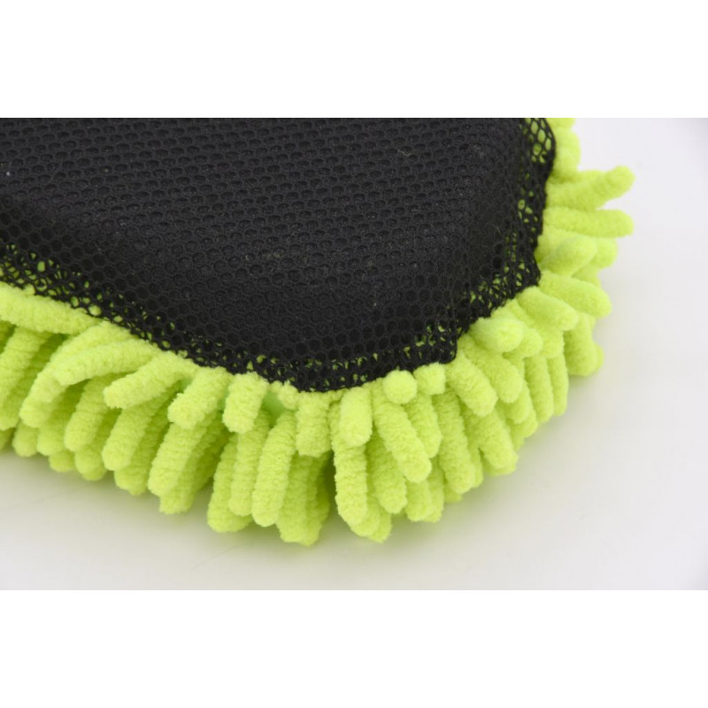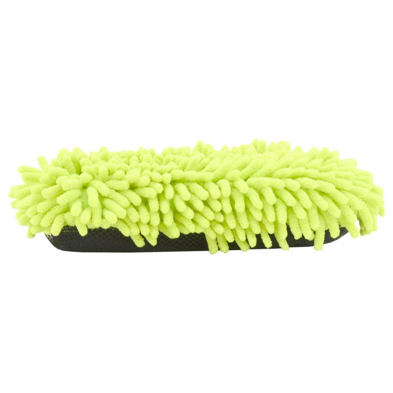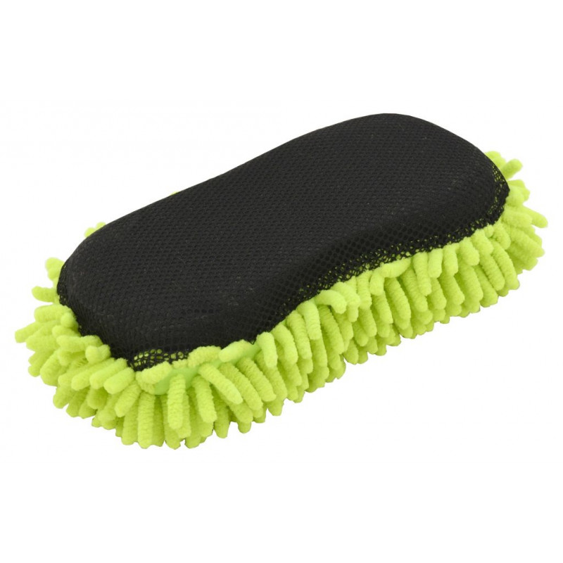Obojstranná špongia so strapcami z mikrovlákna a sieťovou zadnou stranou vhodná na šetrné umývanie. Umývacie špongie tvoria štandard, ktorý je použitím mikrovlákenných strapcov prekonaný, vďaka šetrnosti a dôkladným umývacím schopnostiam. Strapce z mikrovlákna absorbujú viac vody a nečistôt, než bežné umývacie pomôcky. Vďaka tomu chráni chúlostivú karosériu pred poškriabaním. Mikrovláknové strapce umožnia použiť špongiu v suchom stave, ako účinnú prachovku. Zadná strana špongie je navyše opatrená mriežkovanou štruktúrou na odstránenie odolných nečistôt. Špongia so strapcami je ideálna na použitie metódou dvoch vedier, kedy v jednom je voda s autošampónom a v druhom samotná voda na oplach zachytených nečistôt na špongii.