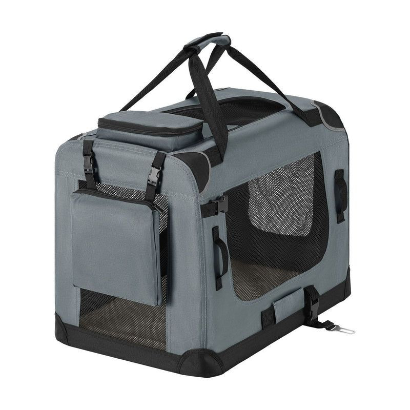 Poskytnite svojmu domácemu maznáčikovi vlastný bezpečný úkryt na cestách alebo doma. Skladací prepravný box v šedej farbe ponúka pohodlný priestor pre malé psy, kde môžu odpočívať, pozorovať svoje okolie a cítiť sa v bezpečí. Vďaka mäkkému polstrovaniu a vetraným okienkam bude váš pes vždy v pohodlí a bude mať dostatok čerstvého vzduchu.